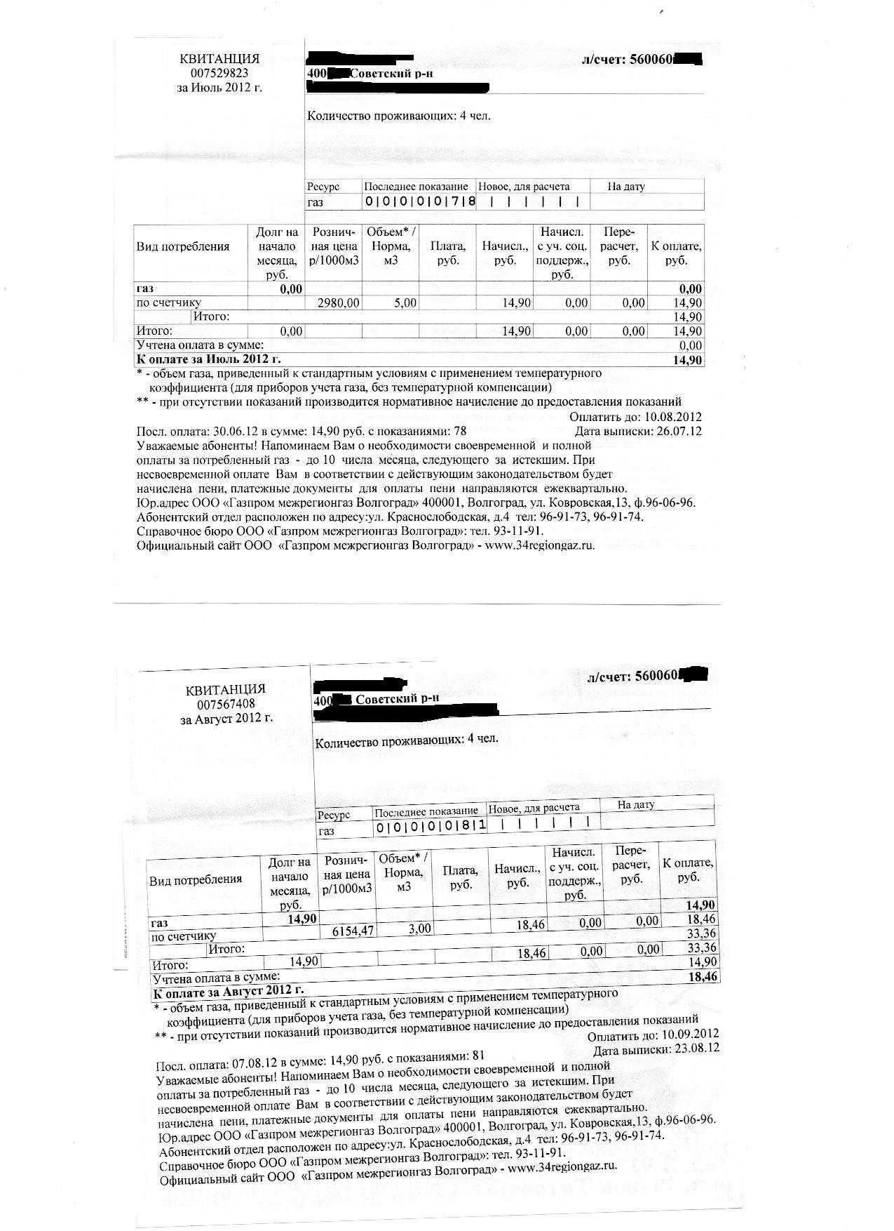 Ха-ха-ха. Салаги вы все. А не хотите повышения на 106 % ? Сто шесть процентов, я не ошибся. Я его получил. Я ещё полтора года назад поставил счётчик и платить стал в десятки раз меньше. Там ещё были какие-то разные тарифы для счётчиков и для нормативов. Так, видимо, чтобы таким умникам неповадно было, все тарифы уравняли. Если в июле у меня был тариф 2980 р. за тыщу кубов, то в августе стало 6154 руб. "Правда, со мной весело?"- ОАО Газпром. 3,14...сы :frustrate:frustrate:frustrate Вот скан двух квитков- июль, август