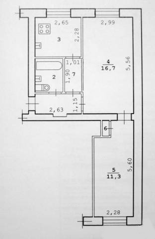 Кухня-проходная комната вполне нормальны для хрущевки. Да и вообще 16м комната вполне неплохо, а если объеденить ее с кухней, так вообще отлично - ванной места больше будет. А вот та комната-спальня какая-то нестандартно узко-длинная, даже для хрущевки.