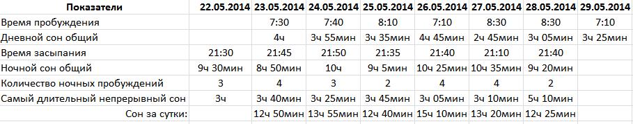 Пока вот так. Днём спит мало и сны короткие. Буду сдвигать время засыпания. Раньше купать, кормить и в сон.