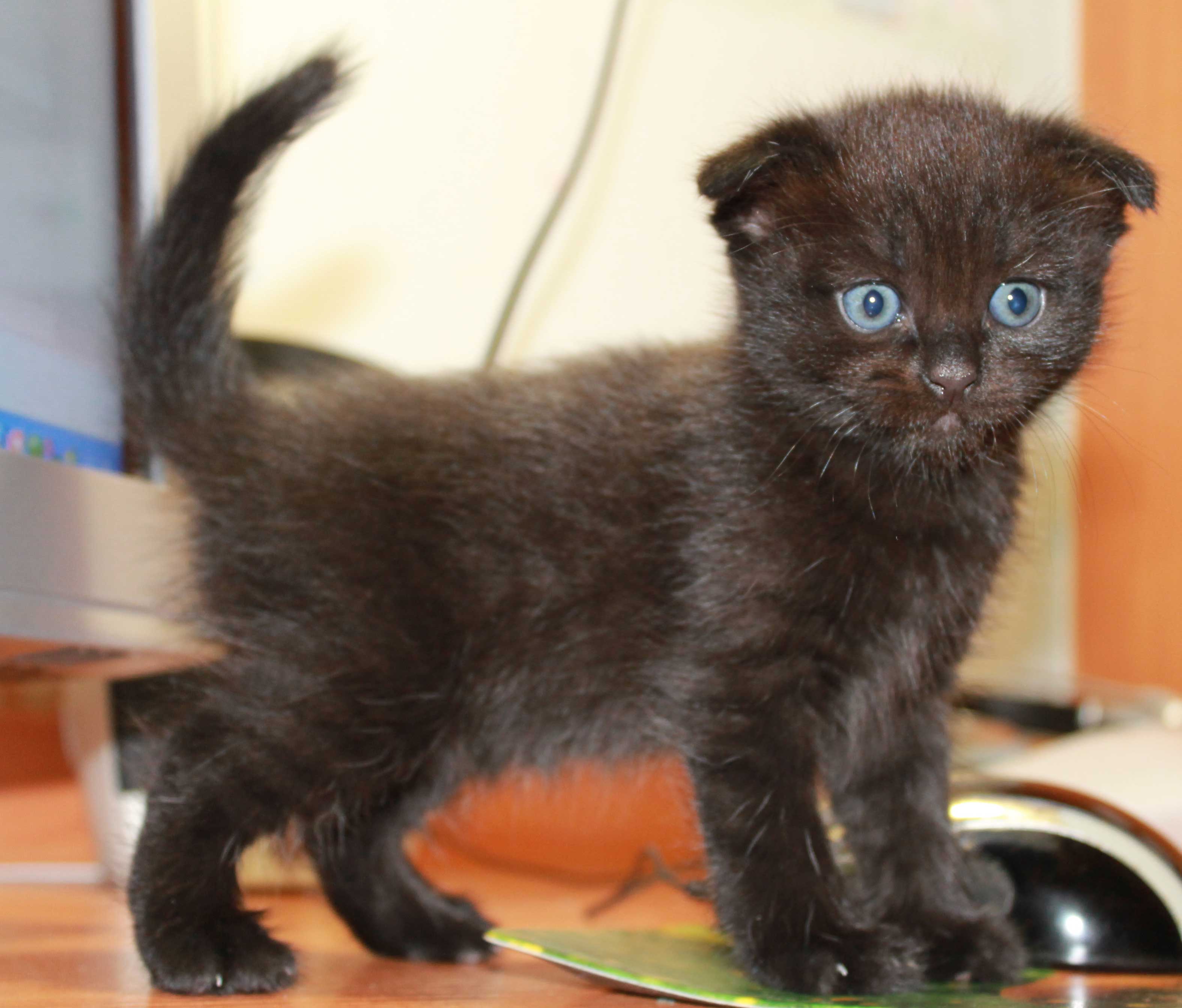 Серенькая-девочка, а полосатик-мальчик,а чернышки-один,мальчик,другая девочка. Тут смесь трёх пород: мать на половину сиамская,на половину шотландская веслоухая,а папшка-британец. Черные котятки,на самом деле не черные,а тёмно коричневые,девчёнка та вообще как пантера,а у мальчика немног7о полосочки проявляются. Когда вырастут будут обалденные коты! Котята активные ,подвижные.