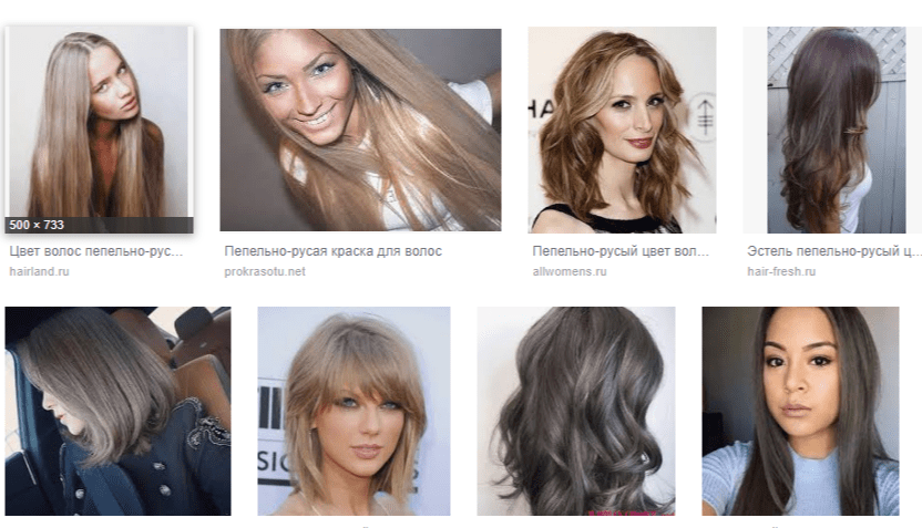 )) Наберите пепельно-русый)) увидите вот: Тем не менее мастера должны понять что клиент хочет. Что касается ретривера то там цвет имелся в виду несомненно такой : потому что будь он более интенсивно рыжей масти, клиентка бы так и сказала "золотисто рыжий". такой и вышел. С переливами, но и рыжим и персиковым не назвать. Меня и восхитило что мастер понял. Клиентка хотела теплый цвет, но не хотела определенно рыжий. Профессиональный колорист вряд ли может надеяться на то что клиент будет выражаться терминами. Понимание-часть профессии. Зато резонеры и мизантропы, вроде меня, не пойдут увидев излишне крутой сайт. )) Ааааа! Скажут они! Потратились на визитку в надежде содрать с клиентуры. Сарафанное радио-на которое я только и опираюсь всегда-значит не работает, клиент не рекомендует, печалька. И цены, кстати, всегда "ориентировочные" как на всех сайтах. Хотя порядок можно понять. По мне так сайт на бесплатном хосте скорее плюс. Не я буду башлять за платный) по моему даже на вашем скрине видно ) Будь она профи сказала бы "светло золотистый беж с растяжкой в белое золото") ты что. Там дорого для меня. между прочим правда отличается)) Больше красного)) Залезла кстати на афанасьев студио -п..ц (ИМХО) а не сайт. Ненавижу когда сразу какие то ролики вылезают-нах мне их смотреть? Должно быть меню: галерея/ услуги/ цены/ контакты. Все в 2 клика. И на любом гаджете. Нах мне их лирика ? Сразу такой сайт бесит.