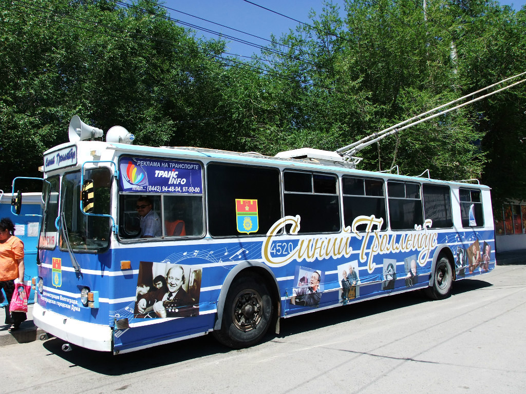 Цвет троллейбуса соответствует песне Б.Окуджавы "Я в синий троллейбус сажусь на ходу, последний, случайный....". На передвижной сцене выступают очень интересные творческие люди, не только музыканты и певцы, но и поэты, а также юные исполнители, победители фестиваля-конкурса авторской песни "Грани творчества". Кстати, музыкально-экскурсионный проект "Синий троллейбус" уникален тем , что на всём земном шаре всего 2 таких троллейбуса - в Москве(маршрут проходит по Садовому кольцу) и в Волгограде!