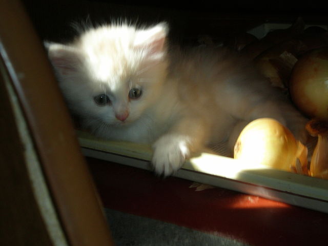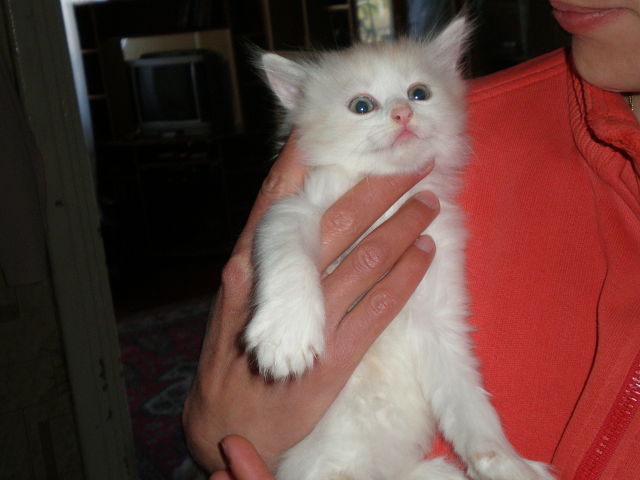 Была кошка и был персидский кот. И встретились они, не смотря на преграды, и родили сына и дочь. Сын получился воинствующим и серо-белым, а дочка- светлая, с бежевыми разводами. Мальчика пригласили жить в другой дом, а девчонка осталась с мамой. Но было бы здорово и дочке найти ее настоящий собственный дом. Она уже умеет все- кушать, баловаться, ходить в лоток и всех любить.