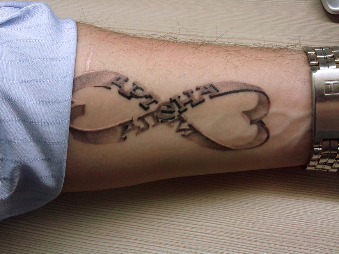 Lucifer, На данный момент тату закончена. Когда появится второй сын, тату будет добавлена. Мастер Роман из Статуи сказал, что можно обыграть имя через другую букву сделать, типа двойной знак бесконечности.