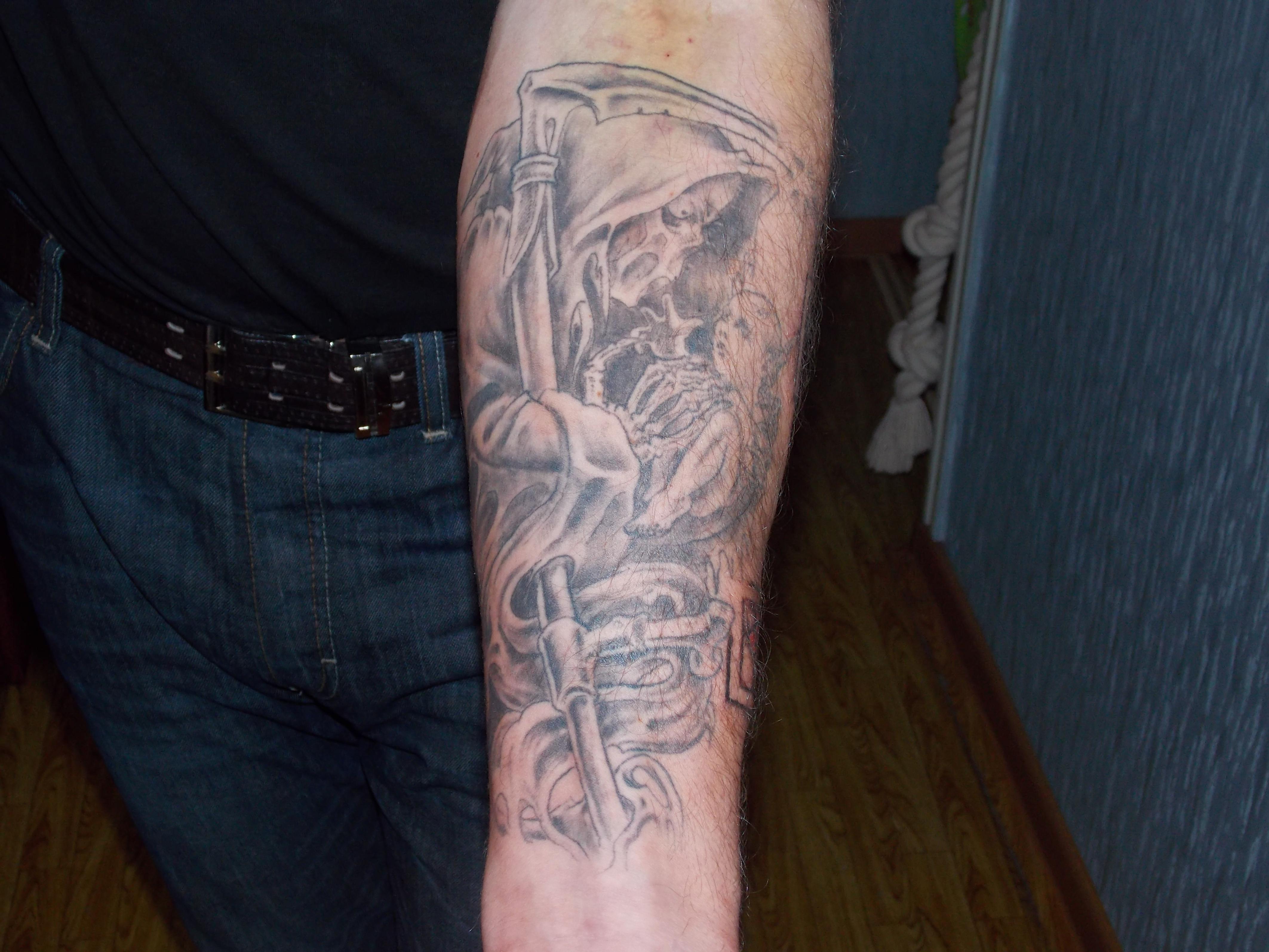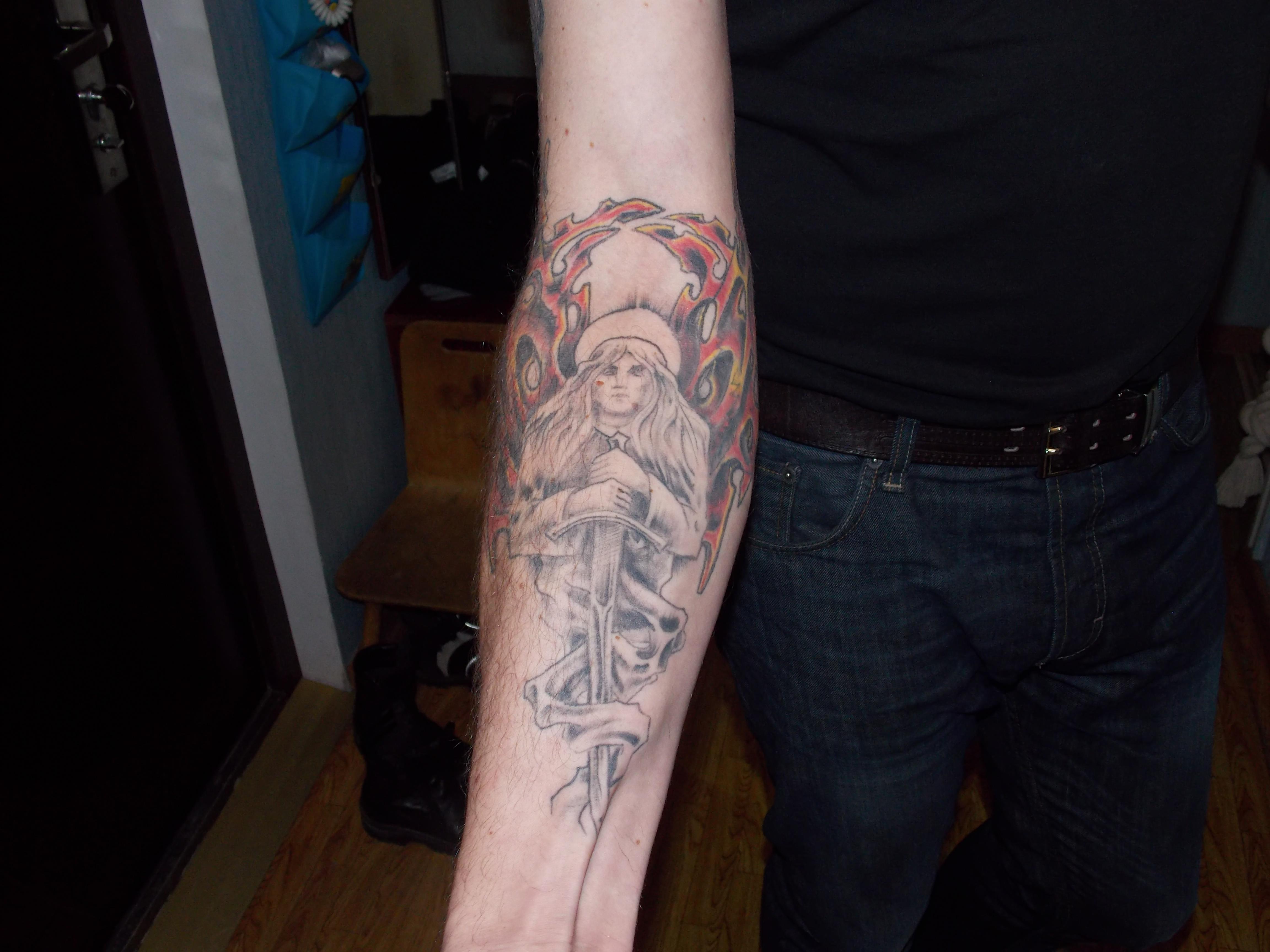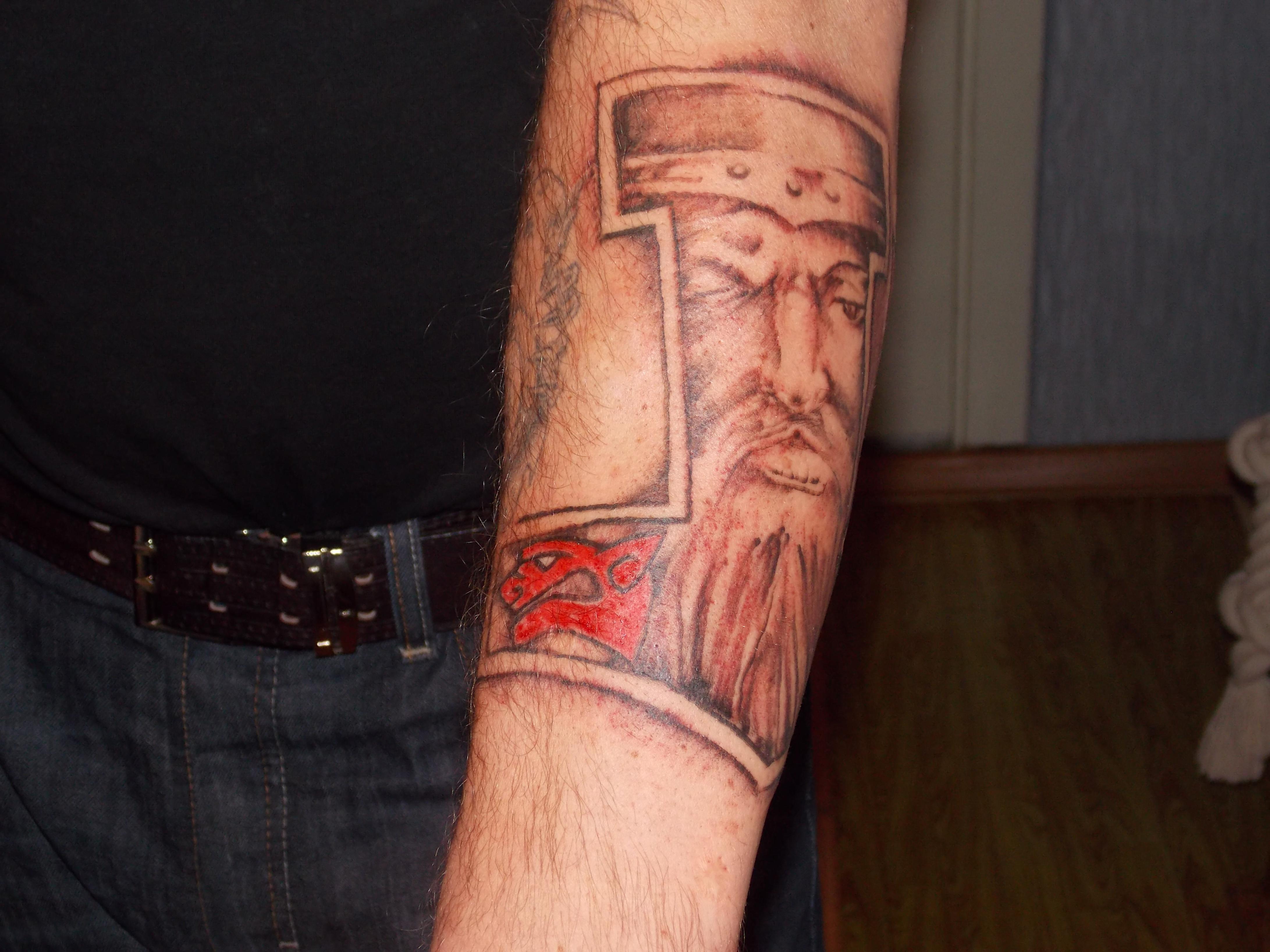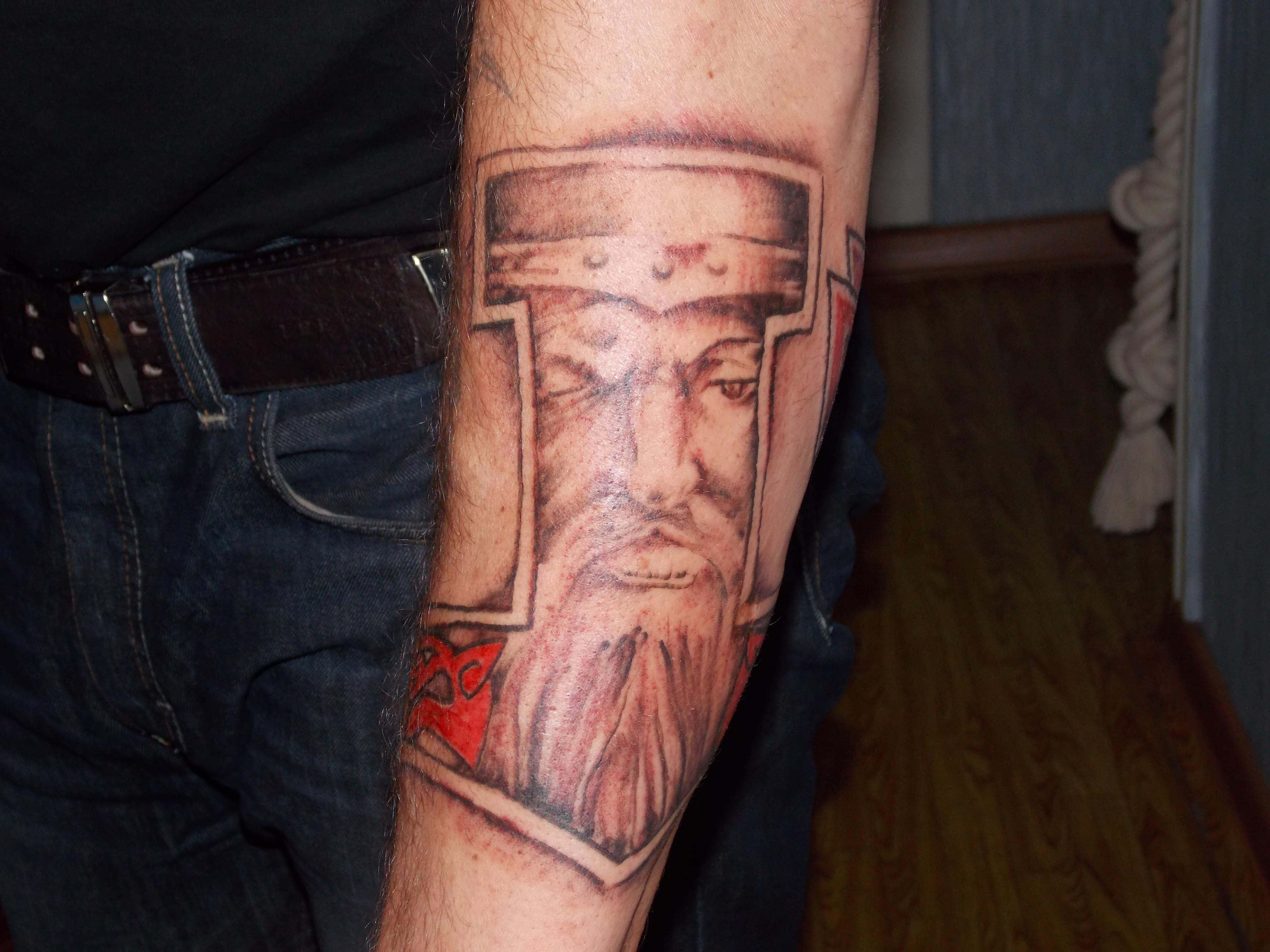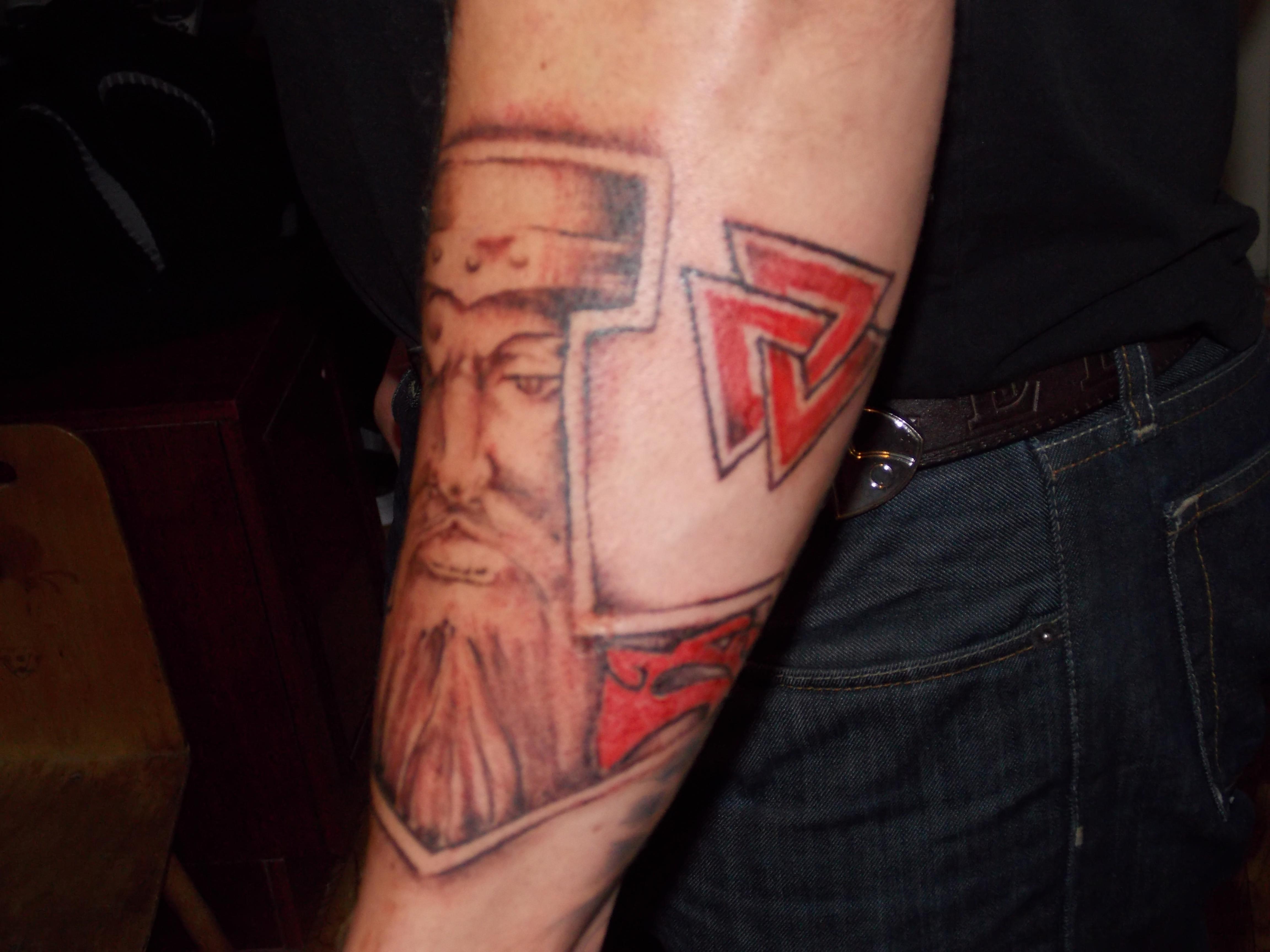 мне тоже она сильно нравится, но ещё раз повторю, энергетика просто сногсшибательеная у неё, знал-бы что так будет, очень сильно бы подумал делать её или нет. И ещё, что мне нравится в мастере который мне делает татуировки -он настоящий профессиональный потомственный художник, и все рисунки выполнены исключительно в единичном экземпляре, а не тупо на ксероксе распечатаны из интернета, так же у него строжайшее табу, не делать одну татуировку дважды. Сейчас обвязку к Мьёльниру он мне рисует, опять говорит в коричневом запустим на оставшуюся часть руки, тени сделаем черными, оттенки синими, а задний фон красный. Уже чую, что снос башки получится, а у меня ещё на правой руке процентов 30-35 свободного места. Так что ещё месяц-полтора, мне придётся слушать треск тату машинки. ---------- Сообщение добавлено 11.02.2013 09:07 ---------- в каком месте они неровные???, оно так сделано что на фотке вообще правильно не выберешь ракурс чтоб сфоткать, да ещё раз повторюсь, что тама до фига привязок будет, это можно сказать только начальная рыба сделана, очень большая композиция запланирована.