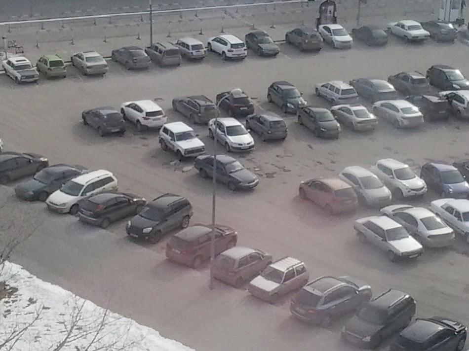 Видел, но зачастую гораздо ближе к припакрванным, или впритык к ним. И в 50% случаев мужик сидит за рулём, а баба идет в магазин. А вот ТАКОЕ я впервые вижу, хотя частенько там езжу и хожу.