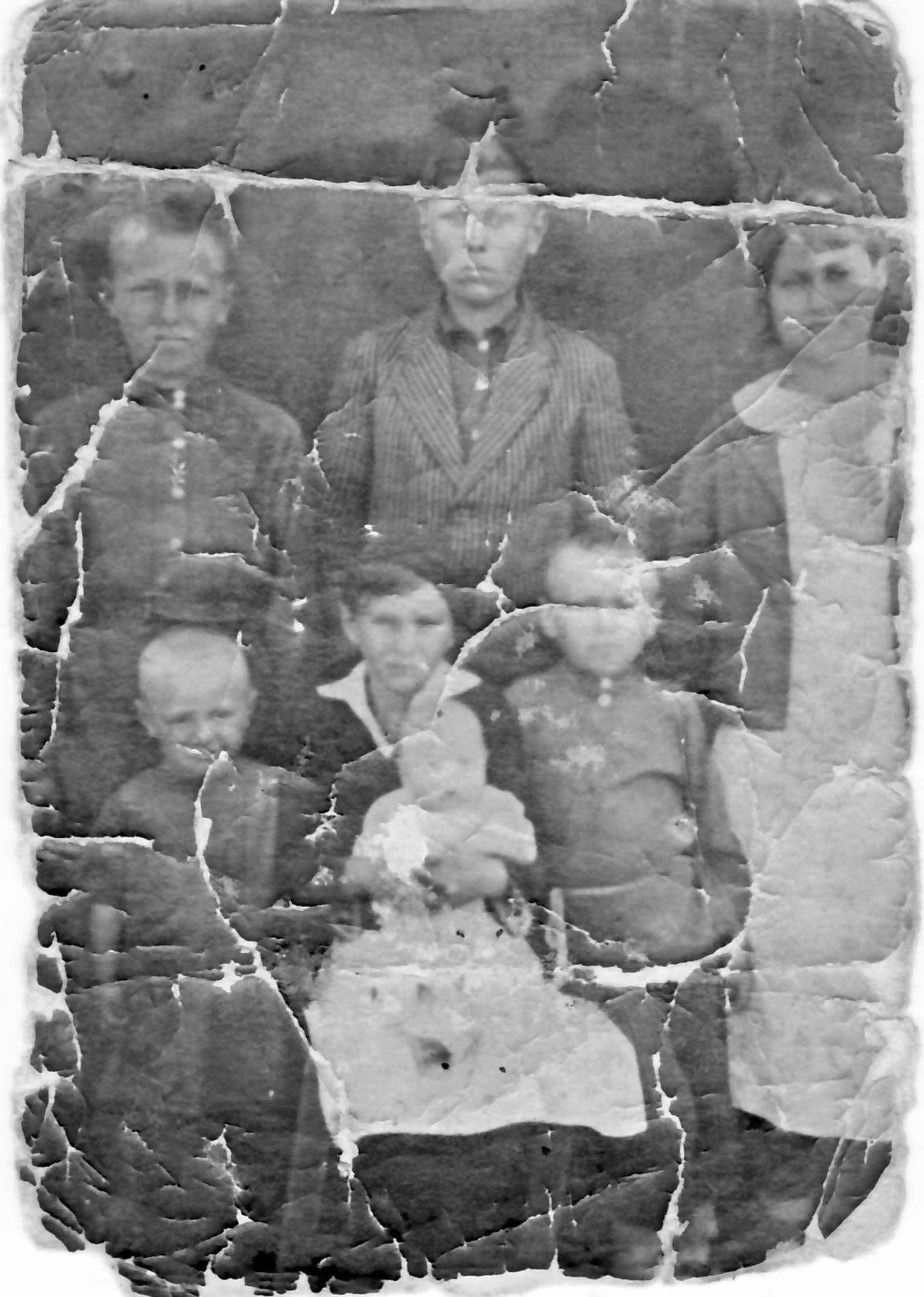 Вы ещё "чешую" не видели :d: Нормальная фотка, очень даже хорошо сохранилась:) Просто трещины фотопокрытия бумаги, восстановлению подлежит.