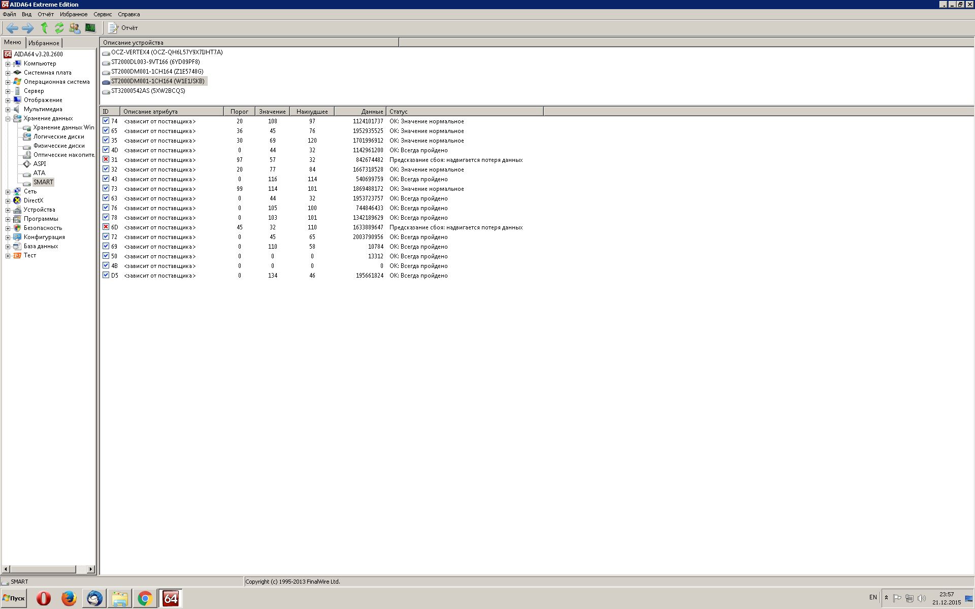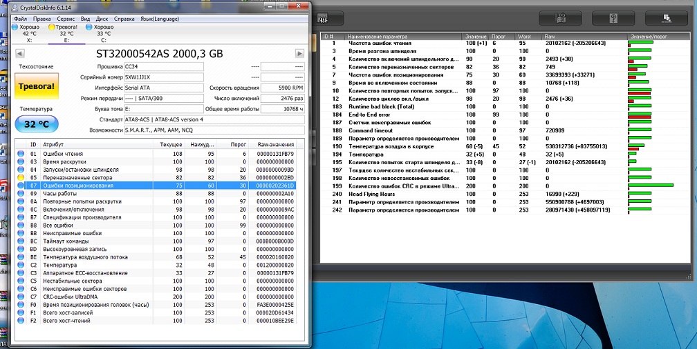 Пациент - ST2000DM001-1CH164, прошитый CC43 Симптомы - Был 1 бэд в смарте. На данный момент смарт не показывает. В Виктории пишет=BAD. При этом работает, файлы читаются, записываются. Торрент закачивает/раздаёт. На диске исключительно видео. При просмотре с него фильмов, 2-3 раза случается остановка фильма, как-будто диск засыпает, секунд через 10 фильм идёт как ни в чём не бывало. Есть такой же винт, но прошитый СС27. На нём ничего подобного не наблюдается. Кекс, проконсультируй пожлста