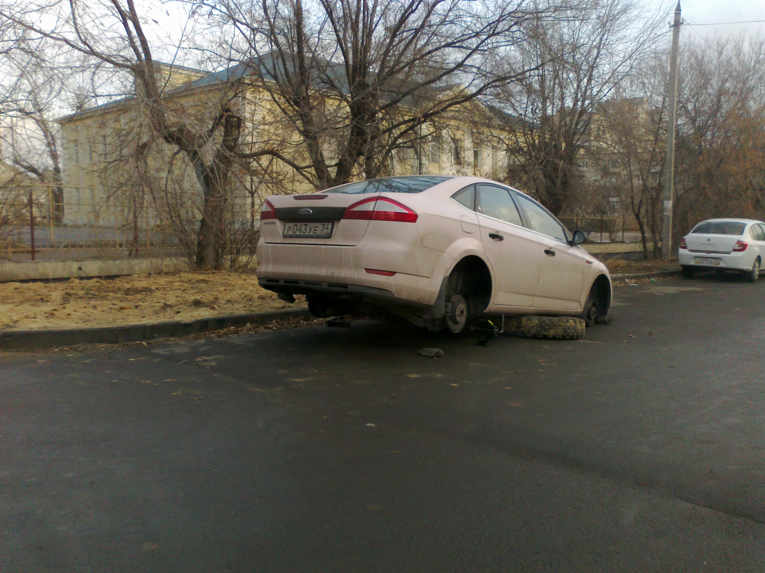 один из способов обезопасить себя от подобного рода сюрпризов,кмк,ставить машину на как можно больший бугорок,т.е.под углом. хрен они её задомкратят! ---------- Сообщение добавлено 16.12.2012 14:54 ---------- под мондео домкратик-то остался) бонус хозяину так сказать