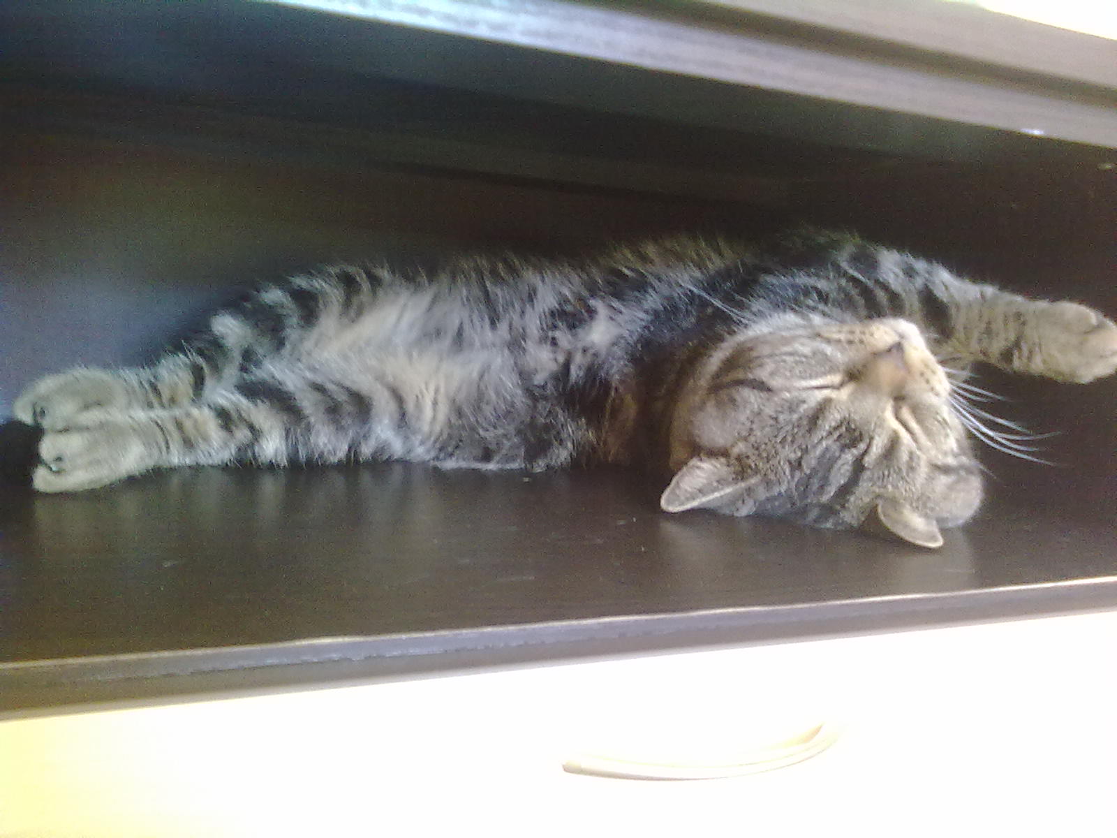 ага,только наглость-второе счастье у них Вот: на первой спит в пеленальном столике-никто ж не видит,ага а на второй,скотина, спит на гладильной доске, на чистенькой простынке, не успела погладить