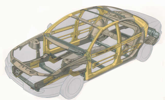вот картинка каркаса моего авто Opel Omega B. правда, не знаю, что там из какого металла по отзывам тех, у кого случалось ДТП, вроде, прочность приличная.