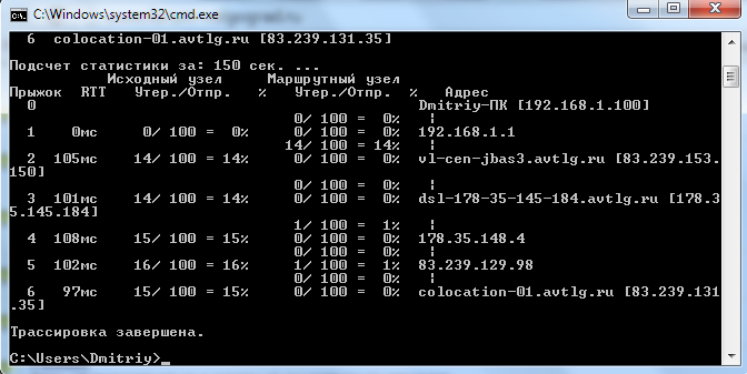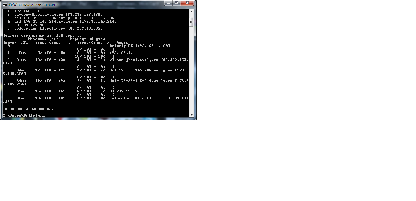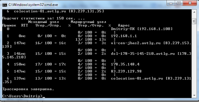 номер л.с или дог.карты в личку. посмотрим. пока вижу потери на не первом хопе что говорит о вариантах проблемы Линия/DSLAM/модем