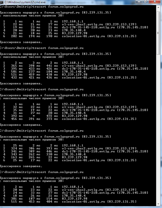 xoxot07, Судя по трасерту у вас адсл и проблема до первого хопа. То есть проблема с последней милей. И причина может быть в том числе и в вашей квартире. Поэтому я бы на вашем месте сначала проверил качество проводки и работоспособность сплиттера. Если все в порядке - вызывать мастера проверять кабель от квартиры и дальше. Просто "поганой" компания часто оказывается из-за разболтавшегося контакта в телефонной коробке в квартире клиента