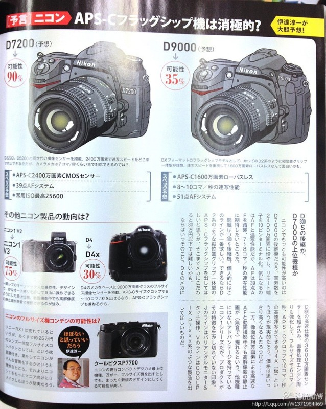 Прогноз выпускаемой фототехники на 2013 год. Прогноз не мой Несколько страниц появилось в январском печатном издании Japanese magazine Impress. Ниже представлены камеры Canon и Nikon, ожидаемые в 2013 году по мнению этого издания. Камеры Canon, ожидаемые в 2013 году: • Canon 7D Mark II с недавно разработанной КМОП-матрицей, скоростью непрерывной съемки 10 к/с и ISO до 25600 • Canon 70D будет иметь тот же датчик и ISO диапазон, как и 7D Mark II, но со скоростью непрерывной съемки 3 кадра в секунду • обновление беззеркальной линейки камерой Canon EOS M2 • много-мегапиксельная Canon 1DSx Камеры Nikon, ожидаемые в 2013 году: • Nikon D7200 с 39 точечной системой автофокусировки и ISO до 25600 • Nikon D9000 со скоростью непрерывной съемки 10 к/с и 51 точечной системой автофокусировки • обновление беззеркальной линейки камерой Nikon V3 • Nikon D4X Поживем, посмотрим. Прошлогодние их прогнозы подтвердились полностью.