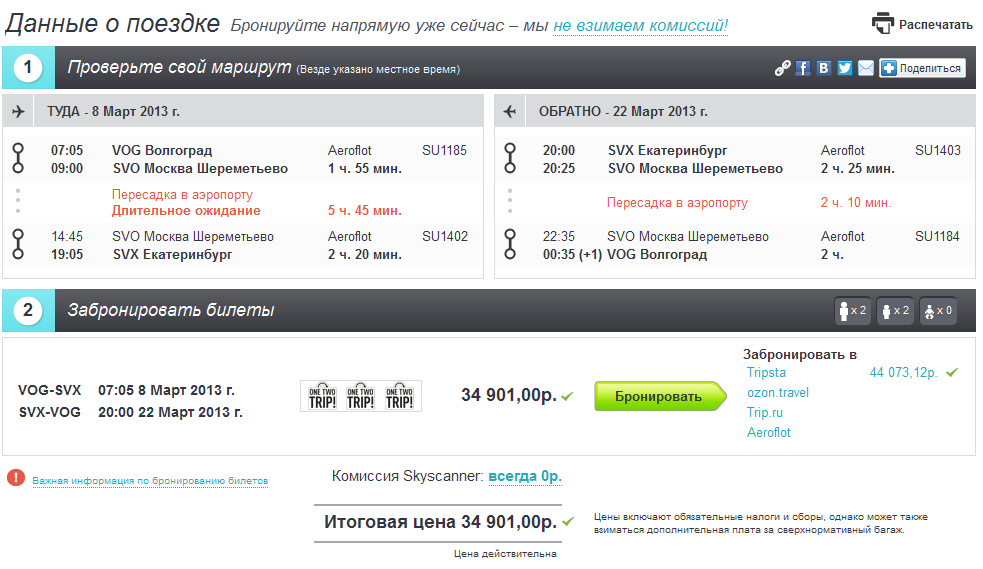 До Москвы авиабилет дорогой. Поэтому если лететь из Волгограда, то действительно дороговато получается: Если же брать отправную точку - Москва, то получается совсем неплохо: