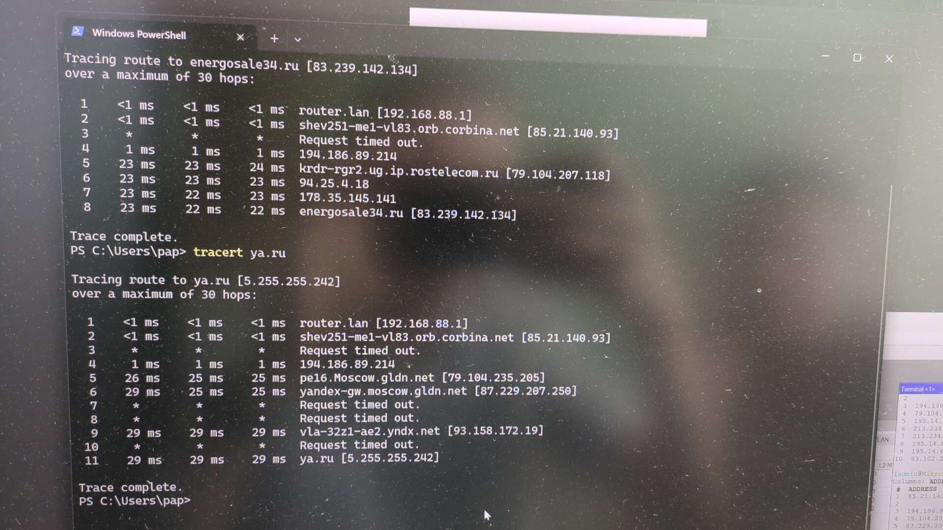 Добрый вечер всем! Можно попросить неспешно, у кого Билайн, проверить tracert ( если в Винде) или др до например ya.ru У меня потеря пакетов откуда-то взялась... Техподдержка говорит, мол на линии проблему не видит, но я туда скриншоты не мог послать Собственно стал смотреть - потому, что не открывалась подача показаний счётчика за электричество. Думал, что сайт у них ломался, подождал, решил проверить... Гляньте, плиз, чтобы локализовать проблему! По скриншоту, до их первого хоста у меня 1 мс, а затем пауза более 3сек. Я на роутере смотрел, там до этого следующего узла 100% loss! С Яндексом то же... Вопрос, как локализовать проблему?