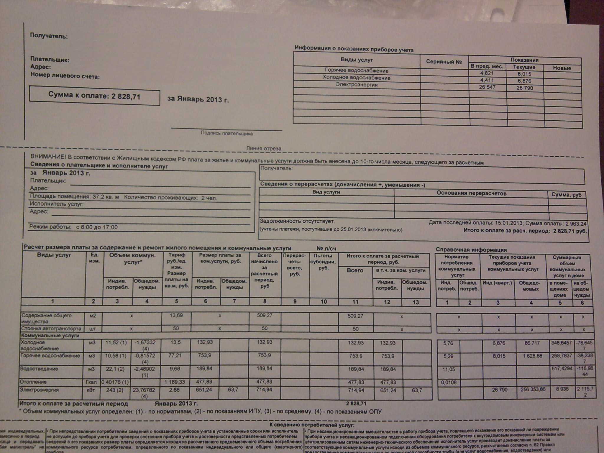 Плата за коммунальные услуги. Фото-сканы платежек.