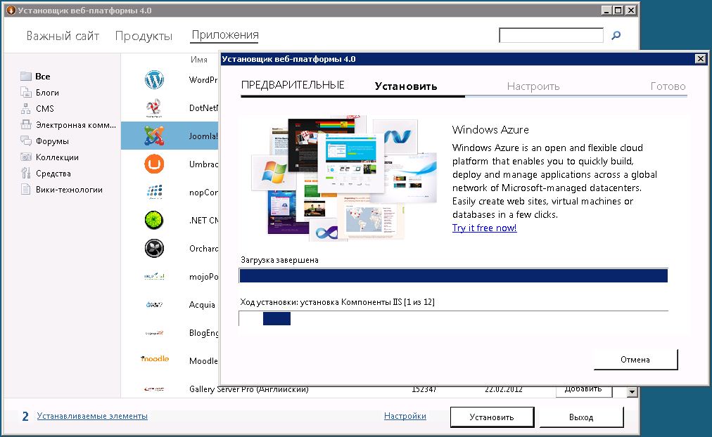 Значит, пару лет назад был куплен фирменный сервер hp proliant, и долгое время его функцией было простое потребление энергии - через дополнительный хороший бесперебойник сервер был включен в розетку и ничего не делал. В середине прошлого года к нему добавилась функция (внимание!) DHCP-сервера! Он раздавал ipv4 и ipv6-адреса примерно 200 компам в домене, который на нём был и поднят. Я заинтересовался этим чудом в начале 2013, ведь мы, как учебная организация, платим дурацкому сервису oshkole.ru деньги, чтоб на убогом CMS получать некое подобие сайта. А тут - свой сервер вроде как. Куплен за немалые деньги. Вроде бы. Обидно, короче стало. И добавил я ему роль IIS-сервера, чтобы православную joomla там развернуть. И заметил я, что сервер, вроде бы ничего не делая, как-то ооооочччееееньь меееедлеееенннооооо работает. Загрузка камней макс. 25%. И то жрёт их Диспетчер задач, когда открыт он. Памяти свободно под 700 метров. В плане, тот же проводник. Надимаешь, скажем, "мой компьютер". Ждёшь пару минут. Открывается окно, ещё через 30 секунд прорисовываются элементы окна. Вроде открылось. Нажимаешь диск Ц. Ещё полторы минуты всё думает. При этом в диспетчере задач всё в шоколаде. Чувак-системщик, который этим сервером "занимался" сказал, что такая херь с тупизной началась после обновления. Я глянул журнал, 13 декабря 2012 было установлено рекомендуемое обновление Windows Driver Framework для Windows Server 2008. По отзывам в инете именно hp-шные серваки тупят на 90% из-за кривых дров на RAID-контроллер материнки. Но прикол в том, что driver framework - не равно драйвер, да и рейд-массива там нет, есть всего 1 винт, который разбит тупо пополам и на 1 разделе установлена ОСь. И решил я забить на это и опробовать с помощью microsoft web platform installer 4.0 развернуть CMS Joomla! Но. Можно ждать 2, 3 часа, весь день (проверял) - оно всё качает, готовится ставить но к установке не приступает - бегает вот такая хрень как на рисунке и превед. Куда копать посоветуете? Все конфиги, процессы, дисп. устройств, запущенные службы могу предоставить в студию, ибо RDP худо-бедно поднял и оно работает.