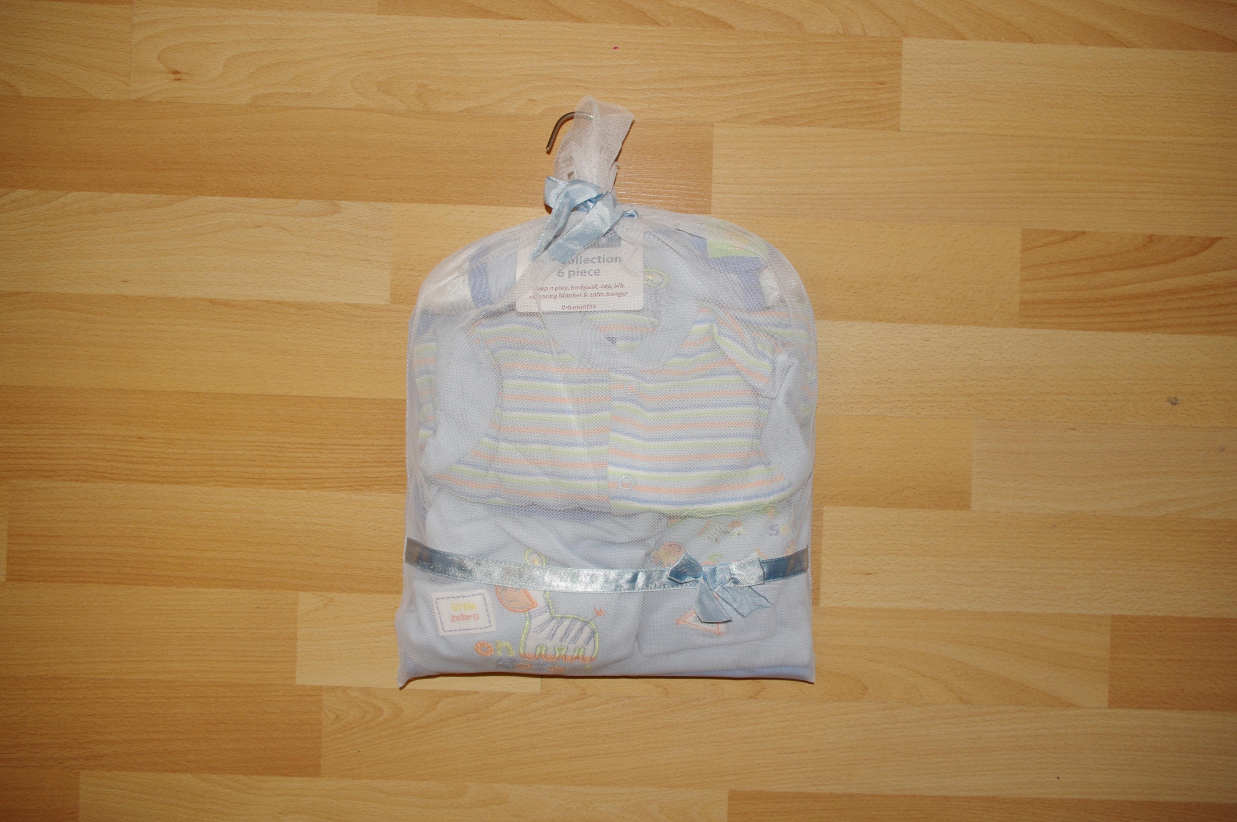 Продается подарочный одежды Hudson Baby на мальчика. Новый в упаковке с этикетками: боди (0-3 мес.), слип (6 мес.), покрывало, шапочка, слюнявчик. 100% хлопок, очень хорошее качество трикотажа. Привезли из Америки. 1000 рублей. Комплект в Москве, при желании перешлю по почте.