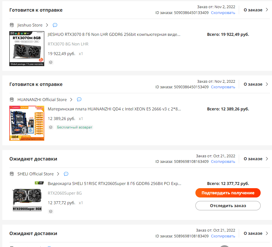 @дядя Aleks, я заказываю компплекты компов и видяхи. Часть идёт на почту, часть в постомат. Уж явно выше тысячи стоимость