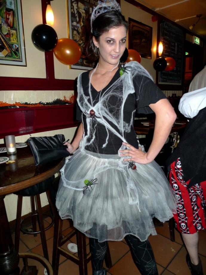 Короче Обошлась малыми кровями Растрепала волосы, измазала "кровью" лицо и кровавые губы. Короткую юбку, порвала колготы, сапоги высокие и все с черепами (майка, кольца, подвески, браслеты). Всем спасибо за советы