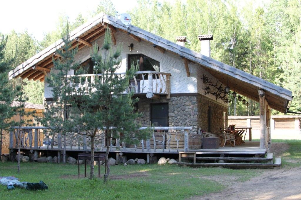1 дом: застекленная веранда, как раз её и видно на фото, прихожая, сауна, туалет, ванна, кладовая, гостиная, кухня, на втором спальная, спальня с душем и туалетом и гардеробом, спальня, спальня, туалет и душ. 2 дом: коридор, две кладовые, сауна, туалет, душ, прихожая, кухня-столовая-гостиная (всё вместе, не знаю как зовется), на втором четыре спальни, туалет. Именно у этих идея такая, как дачный вариант, но и как жить они не маленькие. На участке еще есть гараж со вторым этажом, два хозблока, и вот мангальная (беседка или как это здание называют не знаю) и причал для лодки