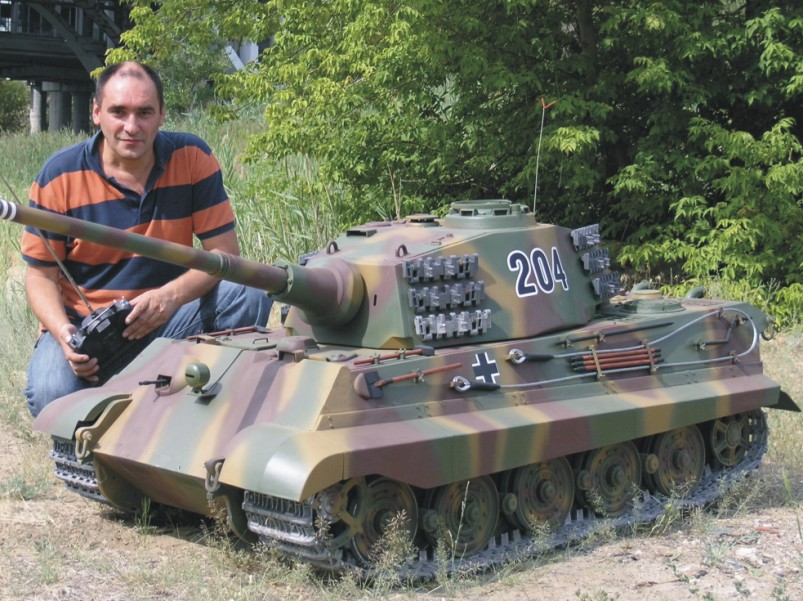 Инженер из Волгограда Алексей Шлахтер и его товарищи придумали и освоили выпуск игрушек для взрослых — радиоуправляемые макеты танков времен Второй мировой войны. В числе покупателей — короли. Надо сказать, что военные игрушки для взрослых весом от 30 до 70 килограмм весьма сложны в инженерном плане. И потому они могут на гусеницах проходить большие расстояния, разгоняться до 30 километров в час, имитировать выстрелы, преодолевать вертикальные препятствия и даже совершенно самостоятельно буксировать легковой автомобиль типа «Форд» на сотни метров. Ужас и леденящее дыхание смерти ощутил я каждой клеточкой своего тела, когда прямо на меня пошли три стальные громадины «Королевских тигров», сотрясая землю своим весом и угрожающе грохоча гусеницами. — Господи, что же так мало времени меня обкатывали танками в курсантском лагере отцы-командиры? — мелькнула запоздалая мысль. — Подготовили бы получше — может быть, и был бы у меня шанс сейчас остаться в живых. Между тем передний танк уже вползал на бруствер первой линии обороны и, перевалившись через ее верхнюю точку, на максимальной скорости рванул вперед. В то же мгновение какая-то неведомая сила подняла его в воздух, разорвала адским пламенем на отдельные части и со страшным шумом разбросала дымящиеся останки бронированного чудовища вокруг солдатских окопов. Шедший вторым «Королевский тигр» завертел башней, ища невидимого противника, и, захлебываясь пулеметной очередью, попытался было выполнить противопушечный маневр. Поздно. Он взорвался раньше, чем его командир понял свою ошибку. Происшедшее на их глазах мгновенно отрезвило третий экипаж. Пушка пока еще целого «Королевского тигра» задергалась в бесприцельной скорострельной стрельбе, а сам танк на задней скорости стал удирать с места боя. — Ну как вам понравилось кино? — довольный произведенным эффектом, включил свет в просмотровой комнате волгоградский инженер Алексей Шлахтер. — Впечатляет?! — Более чем, — отозвался я. — Только, честно говоря, меня впечатляют и материальные потери киношников. Стоимость-то взорванной бронетехники — миллионы долларов, если не десятки! — А вот здесь вы не правы! — усмехнулся мой собеседник. — Для съемок-то фильма использовались не настоящие танки, а точные копии их, сделанные руками нашего творческого коллектива…
