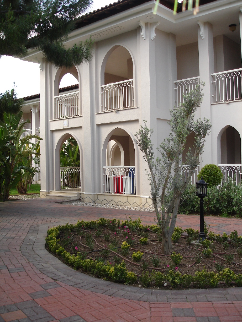 дело в том, что из 4х лягушек на входе транформация проиходила только одной) там по обе стороны от рецепшн 2 группы по 2 лягушки. и все три дня (соответвенно три ночи и три утра) именно одна лягушка вела себя странно. Сегодня мы приблизительно в 2-3 ночи поедем в аэропорт, поэтому я понаблюдаю за этим еще раз вот фото здания рецепшн. лягушек на нем не видно, но они по обе стороны на закругленных газонах перед лесницей /могу выложить фото приза победителю) а вот еще немного видов нашего домика