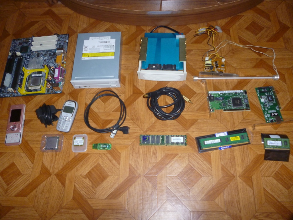 После чистки полок появилась кучка ненужных вещей: 1. Материнка 478 сокет с процом целер D 2,4 работоспособность не гарантирована 2. проц целер D 2,53 вроде был рабочий 3. память DDR 256 Mb тоже не извесно 4. память SAMSUNG DDR3 2Gb живая 5. память DDR3 1Gb для ноута новая 6. WiFi miniPCI AR5B95 снял со своего, рабочая сто процентов 7. Неонка для подсветки корпуса рабочая 8. Блютуз передатчик рабочий 9. PALM Tungsten-E не помню когда включал, в нагрузку Cd- карта 256M 10. шнур для старой нокии DKU-2 11. кабель S-video – тюльпан, подключался к атишной карте 12. CD привод пишущий, почти новый 13. охлаждение для винта в 5-дюймовый отсек телефоны: 1. siemens A70 перестал включаться, плюсом зарядка 2. сонерик модель не помню, не включается 3. мотороллер т720 когда-то включался Отдам за сок, шоколадку, бензин. Так же есть майфун JVC KD-X50BTEY USB тема http://www.forum-volgograd.ru/showthread.php?t=254762 цена 2200 небольшой торг.