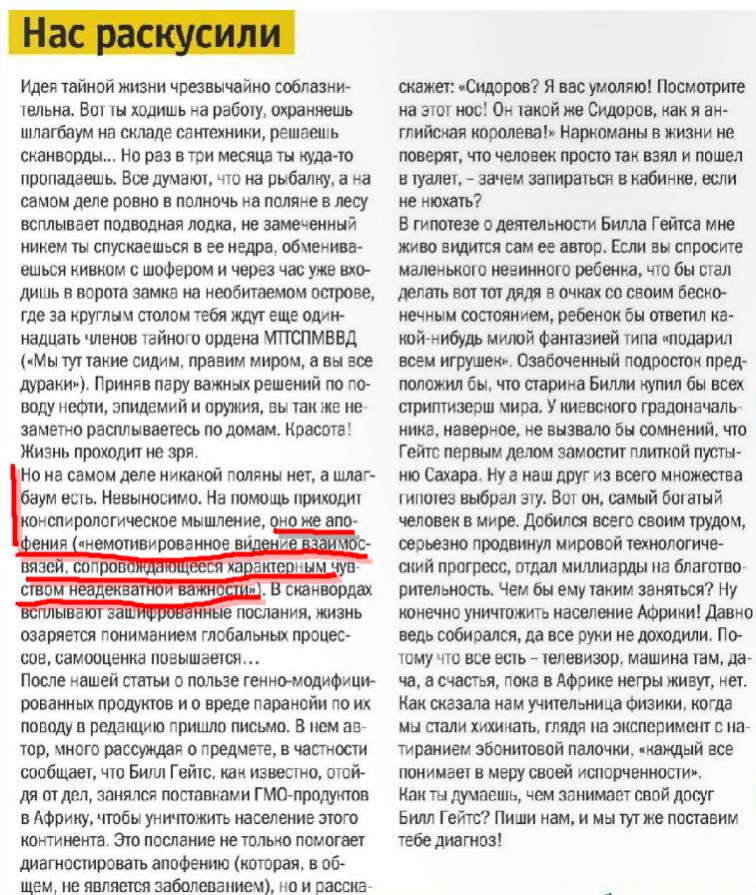 Миром людей правит только ихова глупость….. под руководством Разума находятся некоторая часть человеков у которых есть физиологический руль под названием мозги….. кого нет своих мозгов, то вынуждены пользоваться чужими словами, объясняющими мир … Мир животных или даже всего живого устроен проще и надежней , а именно он этот мир управляется напрямую сигналами из инстинктов без всяких слов, а посему послание из прошлого для настоящих поколений передается без искажений и достоверно в каждом поколении…….. Замечу только, что страта разумных людей в каждом поколении человеков почти постоянна, но апсолютное число разумных людей все таки увеличивается, что и дает возможность использовать всеобщие мозги для всеобщего блага т.н. цивилизации…но, бывают и эпидемии глупости , результаты которых плачевны… у нас последняя такая была пару десятков лет назад, но не большая……… В остальном все теории заговоров не более чем бесплатные приложения для клинского пива …….