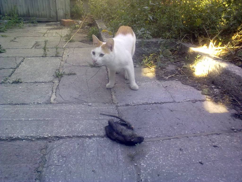 Да есть уже кот, но он молодой еще, два года. А тот матерый кошак. Кошка раньше гоняла таких визитеров, а в этом случае сачкует, паразитка. Он же на кормушку не покушается. Вчера, правда, сделала вялую попытку. Я понял только по топоту, драться она явно не собиралась. Это хорошо видно по ее хвосту. Не злилась особо. Куда мне еще кота, и так двое. С мышами и так никаких проблем. И с крысами тоже.