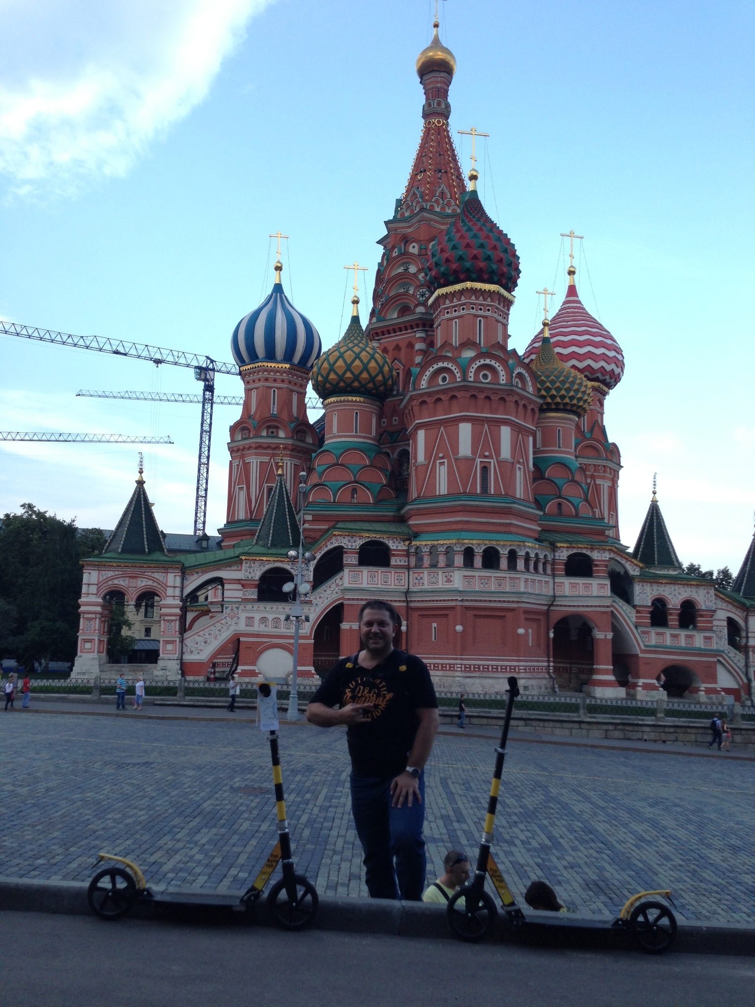 Сегодня в рамках проекта ТурКультур проехались по центру Москвы на самокатах. От Манежной площади вверх к Китай-городу, оттуда на Чистые пруды по Маросейке и Покровке, потом на набережную, потом мимо Кремля, подъем по Васильевскому спуску, проезд по Красной площади, потом Александровский сад и снова Манеж. Маршрут выбрали самый длинный, рассчитанный на 120 минут, правда проехали его за 75 минут Самокаты дают бесплатно, под залог 2000 руб. Вибрации от Собянинской плитки сглаживали амортизаторы, которыми оснащены самокаты. Накат конечно хуже, но хоть руки не гудят. Отличная прогулка, пешком бы я эти 10 км так легко не прошел. Так что если будете в Москве - это отличный вариант посмотреть город и не особо устать А вообще народ возит с собой самокаты в турпоездки. Кататься легче, чем ходить
