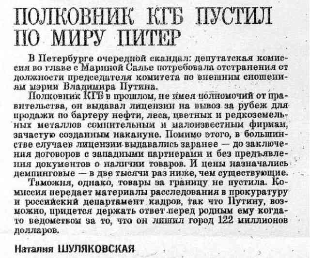 Пусть и дальше вскрывает, только не нужно в президенты лезть. ---------- Сообщение добавлено 09.08.2013 11:42 ---------- Я даже смысла не вижу обращать внимание на этот слив. Уверен, что там идёт просто нереальная подтасовка фактов и прятгивание за уши. Даже второе предложение уже о многом говорит Впоследствии его стали называть «Делом Путина». А почему впоследствии, а не сразу ? Или просто, когда это стало нужно банально притянули это дело к Путину ?