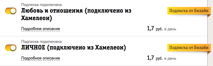 У меня корпоративный тариф Билайна, конечно нет таких выкрутасов (могу подключить если кому интересно - в личку). Не защищаю, но люди часто сами подтверждают подписки в Хамелеоне. Причем при смене телефона Хамелеон вылезает сам. Сделайте на всякий случай *110*20# . И заблокируйте платный контент через 0858.