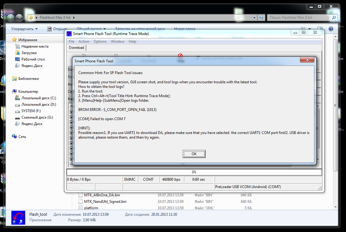 Der Mensch, Ставлю драйвера, запускаю прогу флештул, подгружаю в нее файл прошивки, скаттер, нажимаю даунлоад, подключаю телефон и ... тишина. Просто ничего не происходит...