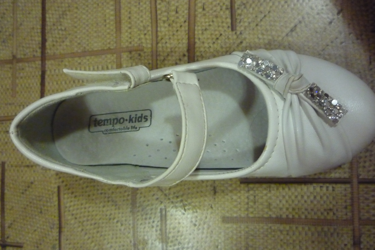 Размер полноценный 29, на среднюю ножку. Верх - кожзам, внутри натуральная кожа - на утренник или еще какой праздничный случай отлично. Цвет-фасончик - на фото. Каблучок маленький, оч.удобный, как и сами туфельки вообще. На ножке смотрятся очень мило и изящно. Состояние очень хорошее, т.к. одевали мы их только на парадные выходы. Единственное но - в паре мест отвалились стразики и на носу правой туфельки небольшая потертость. Особо в глаза не бросается. Покупала в интернет-магазине за 900 с хвостиком рублей. Отдаю за 500. Обращаться в личку.