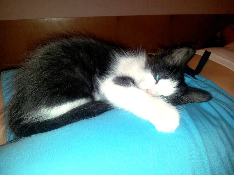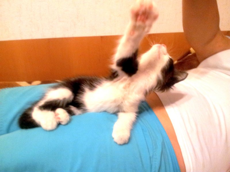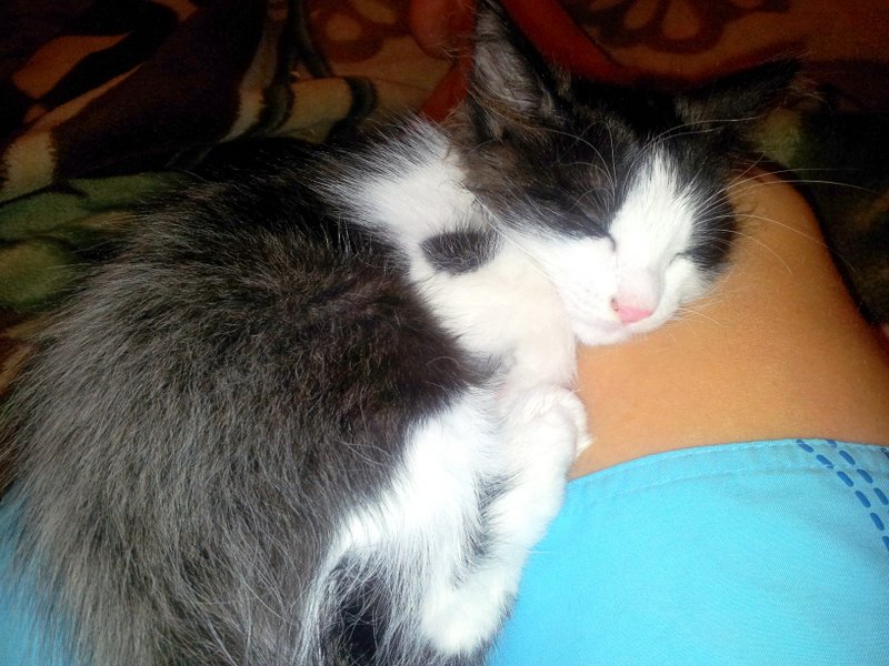 Вчера утром, сев в свою машину, что бы благополучно отправиться на работу услышала непонятный звук -как будто скулит кто или воет, прислушалась- очень жалобно кто то взывал о помощи, вышла из машины, обошла,заглянула под машину - никого, а глухие звуки так и есть, подождав ещё немного вдруг увидела как из днища машины вылез котёнок и жалобно так кричать начал. Видно, что дворовой, но с виду -здоровый, возраст месяца 2,5-3. Жался к ногам, просился прям на руки. Взяла его домой на первое время, очень жалко было оставлять на улице, худенький он, как взяла на руки -дрожал, но стал громко мурчать. Дома накупали, накормили, выяснилось что это молодая кошечка, просто чудесная - харизматичная, очень ласковая, требующая к себе внимания, очень активная и не капли не стеснительная. . Страшно подумать, что могло быть с малышкой, если бы я не услышала её мяуканья и просто поехала бы на работу... Себе это чудо оставить не могу -живёт кролик, с которым она кстати уже успела подружиться, и в скором времени переедет собака. Кстати, кошечка очень умная -стоило 2 раза мне посадить её в лоточек с места где она решила оправиться, как смотрю она уже утром там шкребёт вовсю и делает своё мокрое дело!Передержать смогу максимум неделю, потом в командировку. Девочка будет замечательным ласковым животным в любящих руках!