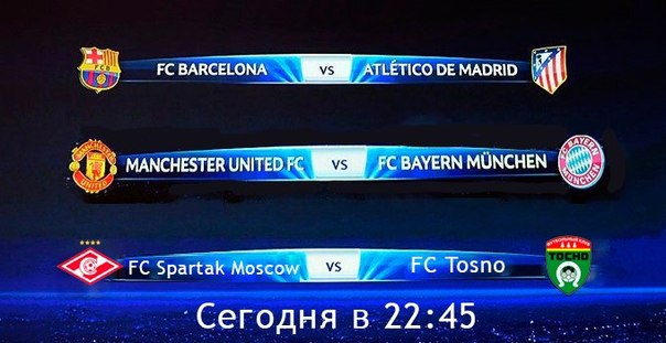 "Тосно" 1:0 выиграет. "Спартак" сейчас слабоват... "Барса" обыграет "Атлетико" с преимуществом в 1 мяч. "Бавария" пробьет фору -1.5 в игре против "МЮ".