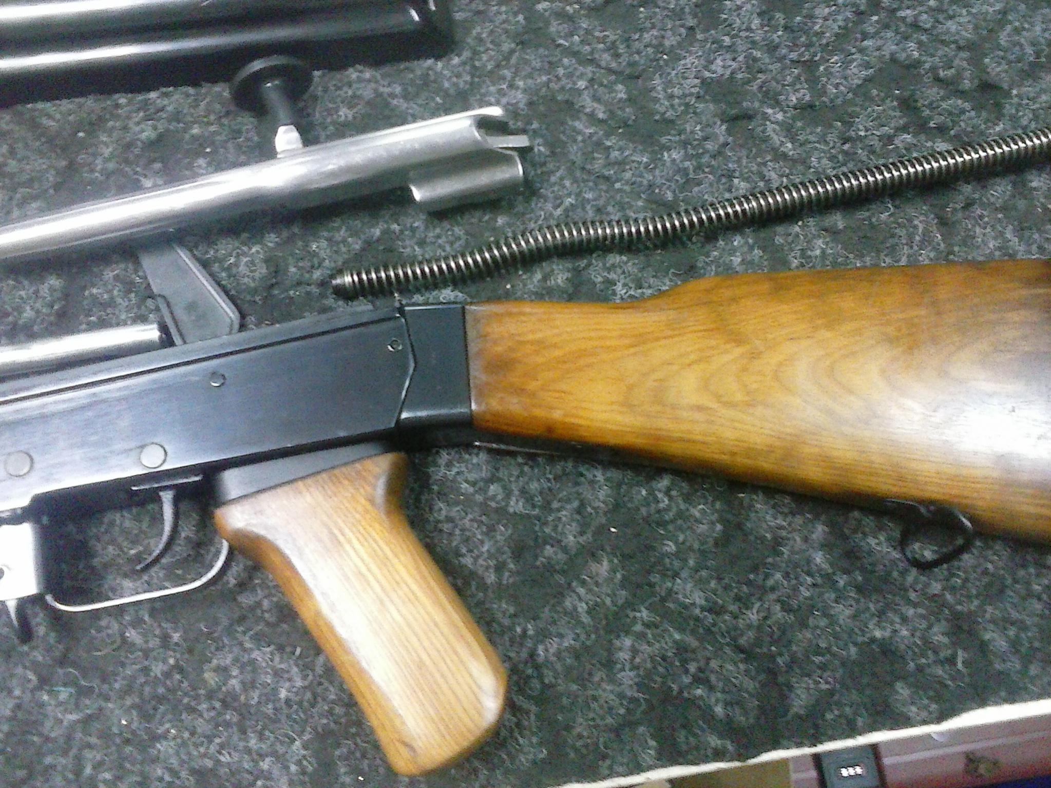 вот всё показать хочу девайсы, что теперь по закону у нас считается охотничьим оружием. АК-47 (новое гражданское название ВПО-136км). конкретно этот, 1952г.в затворная коробка, ствол, крышка- вороненые(не крашенные), сам затвор и личинка хромированы. Состояние просто идеал, все детали имеют один номер. Я вчера думал, что лучше бы их вообще не привозили такие вещи, ибо как его продать, чтоб никто из желающих не обиделся хз. чуть позже, если интересно кому, могу ещё некоторые охотничьи карабины показать.