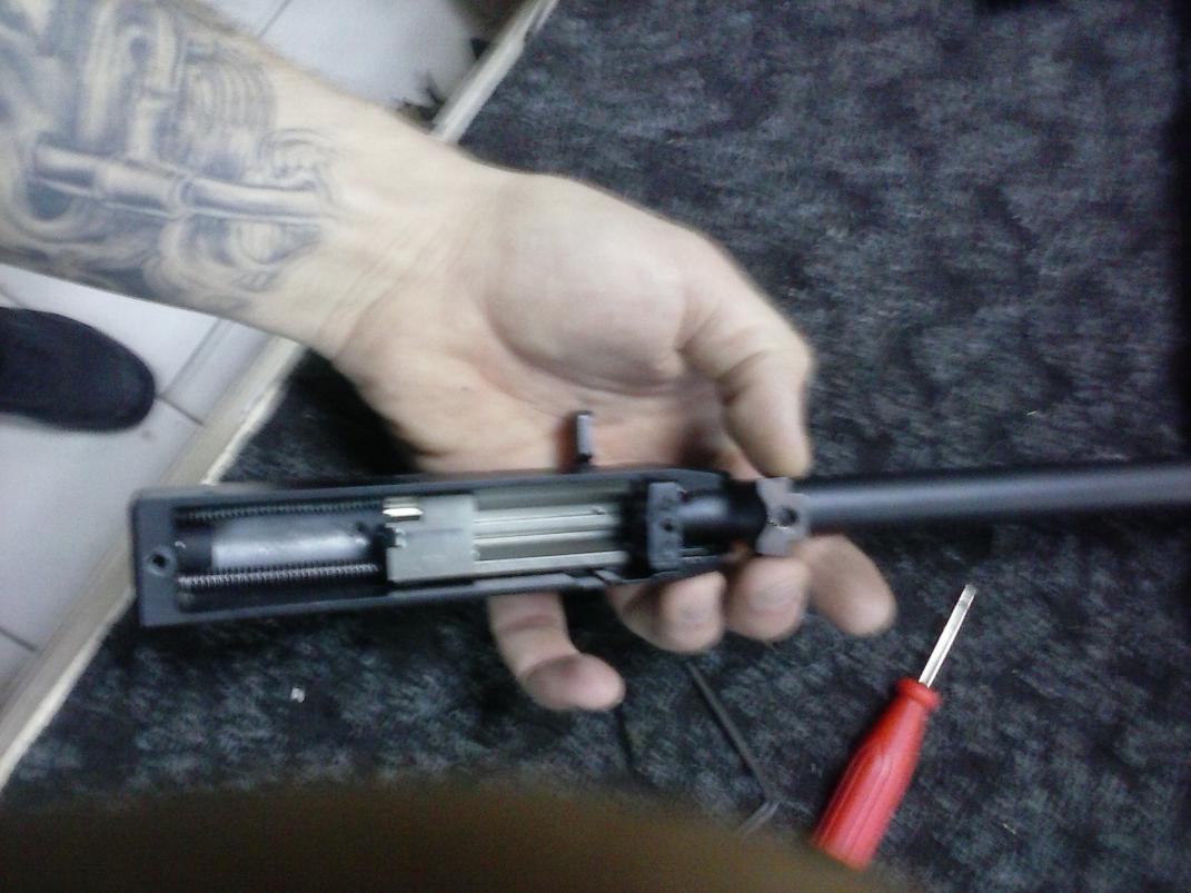кароче не обломался пошел свою разобрал до болтиков, сейчас в нескольких постах с фотками покажу, как 597ой изнутри выглядит. фото 1: коробка со стволом и открученной ложей фото 2: Затворная коробка(вид сверху) с прикрученным родным вивером фото 3 и 4: Те самые болтики(заглушки), на стволе, в местах установки снятых механических прицельных приспособлений, которые до этого стояли там- куда сейчас прикручен вивер фото 5: Шпилька, на которой держится усм на коробке(которую я поменял)