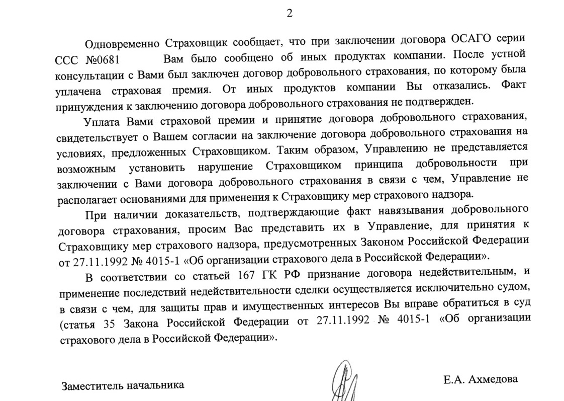 Ага. Я вот тоже писал. КБМ восстановили, а по факту навязывания услуг написали, что "нет доказательств". Надо со скрытой камерой что ли ходить? (что б потом "двушечку" впаяли?). Пишу, что без доп. услуг мне не оформляли осаго. Отвечают: уплата страховой премии означает согласие. Ну да, а надо было, наверное, динамитом там всё взрывать, да? Ублюдки:frustrate И фразы то все закрученные какие. Казуистика, б...ь.