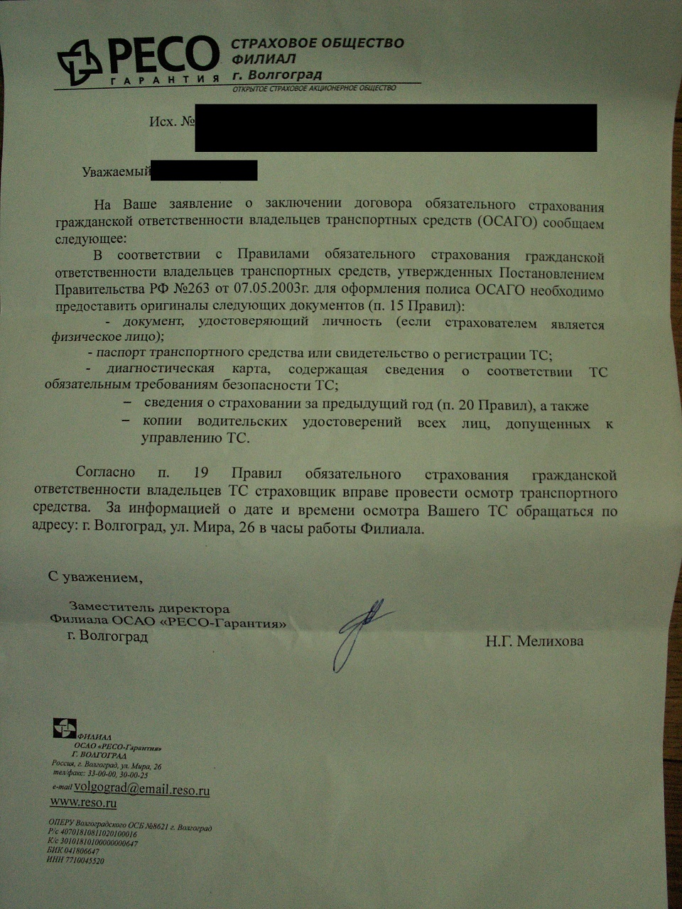 немогупридумать, какой-никакой, а это всё-таки письменный отказ. Теперь с ним жаловаться во все вышеперечисленные организации. Раз страховщик не в состоянии осмотреть машину, пусть возвращает лицензию.