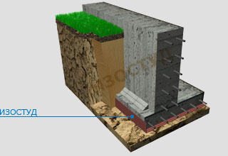 профилированная мембрана из полиэтилена высокой плотности с равномерно размещенными по всей площади выступами в форме усеченных конусов. Я считаю, что на сегодня это один из самых долговечных (из недорогих) материалов под фундамент. Его срок службы в разы больше любых материалов на битумной основе. Единственное его сложно найти цельным куском 10-12м. (хотя бывает) и мало кто умеет его сваривать (у нас таких сецов наверное совсем нет). Этот материал не только договечен, о еще позволяет уменьшать глубину залегания бетона, т.к. уменьшает пучение. За счет конусов идет распределение нагрузки пучения. (конечно предворительно слой утрамбованного песка и щебенки ).