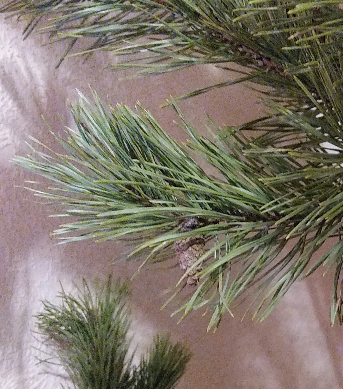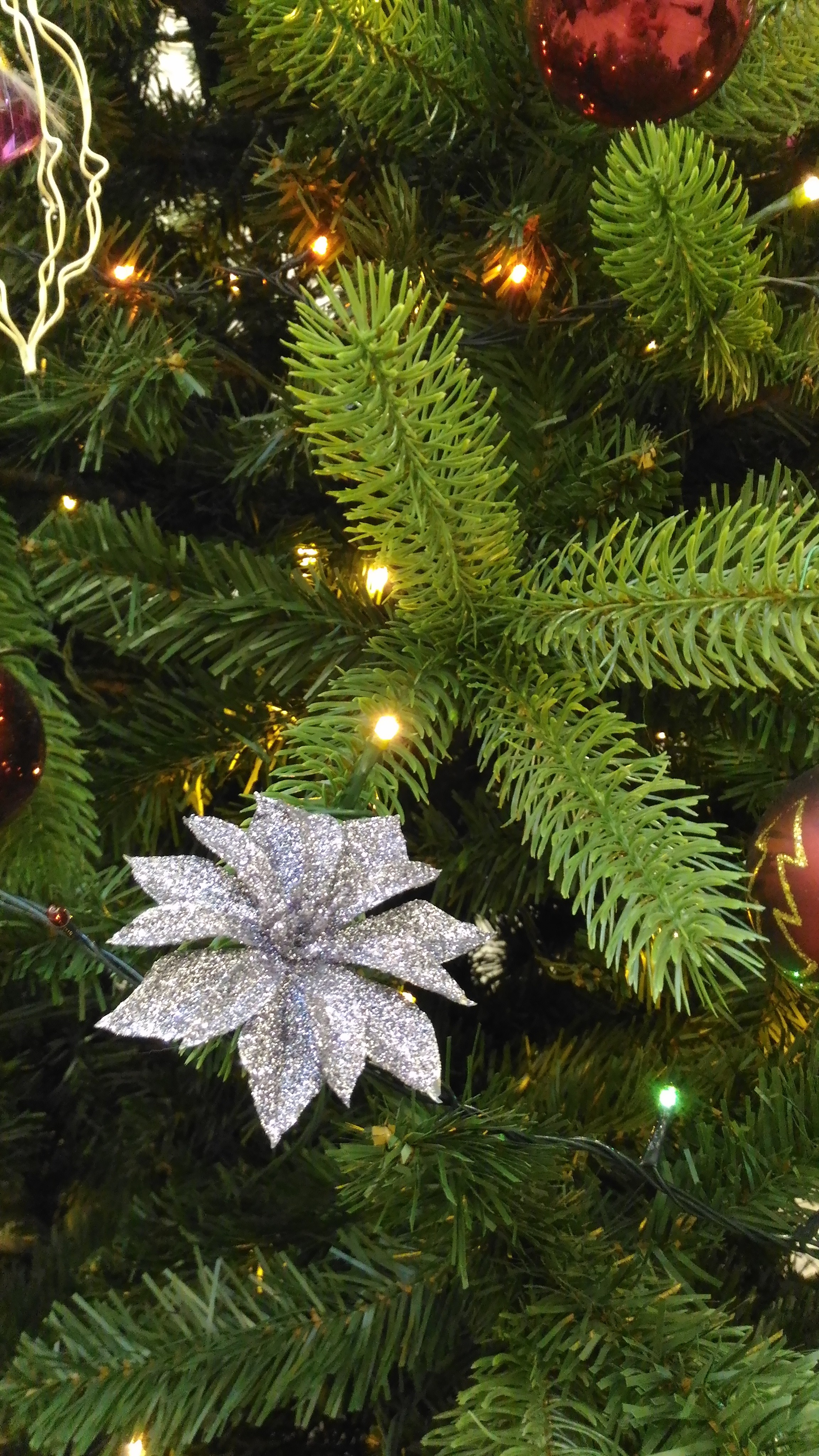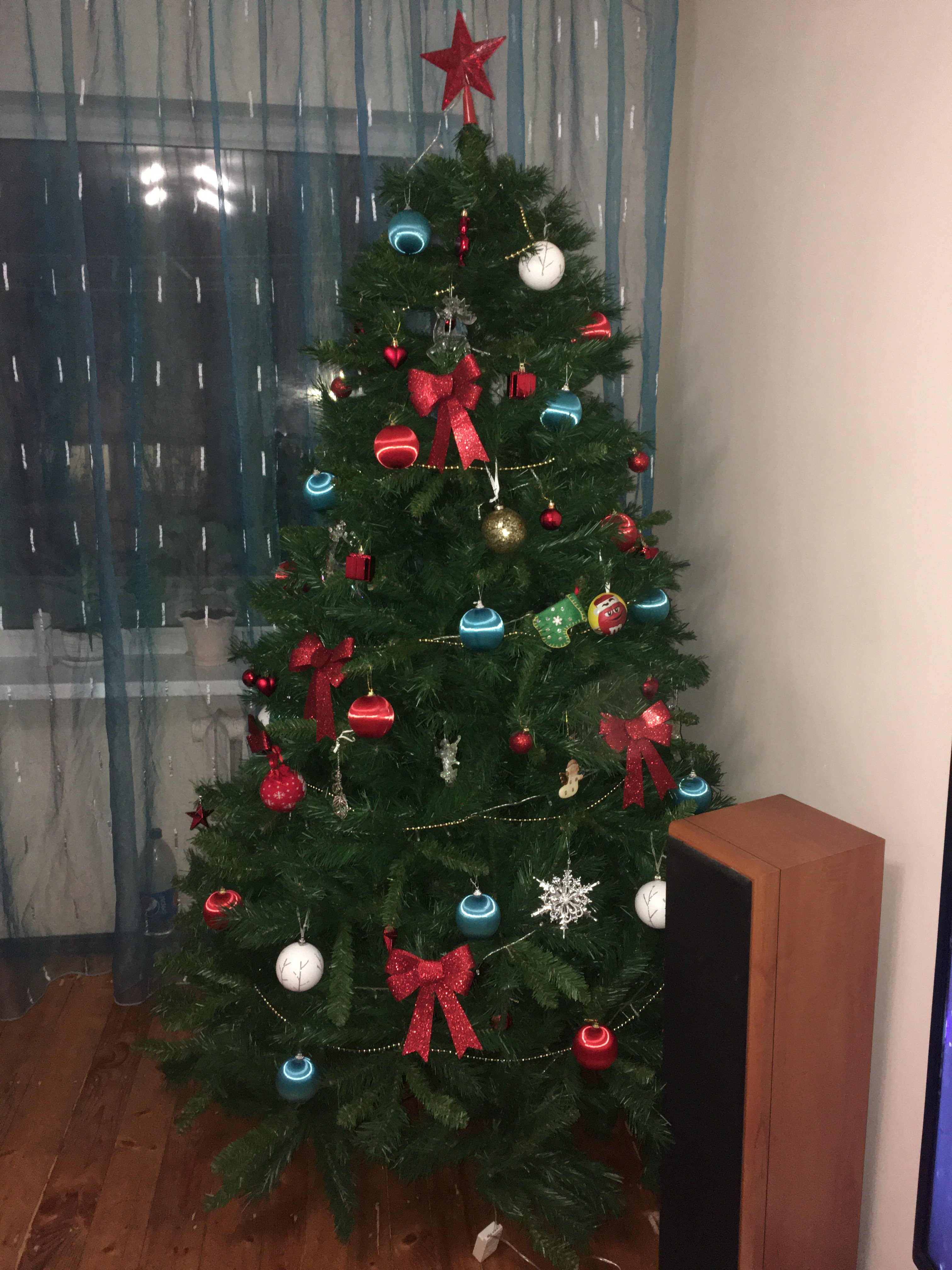 Тож искусственную в этом году поставили, надоело иголки выметать из всех углов, а для запаха пару веточек от живой с краю поставили)