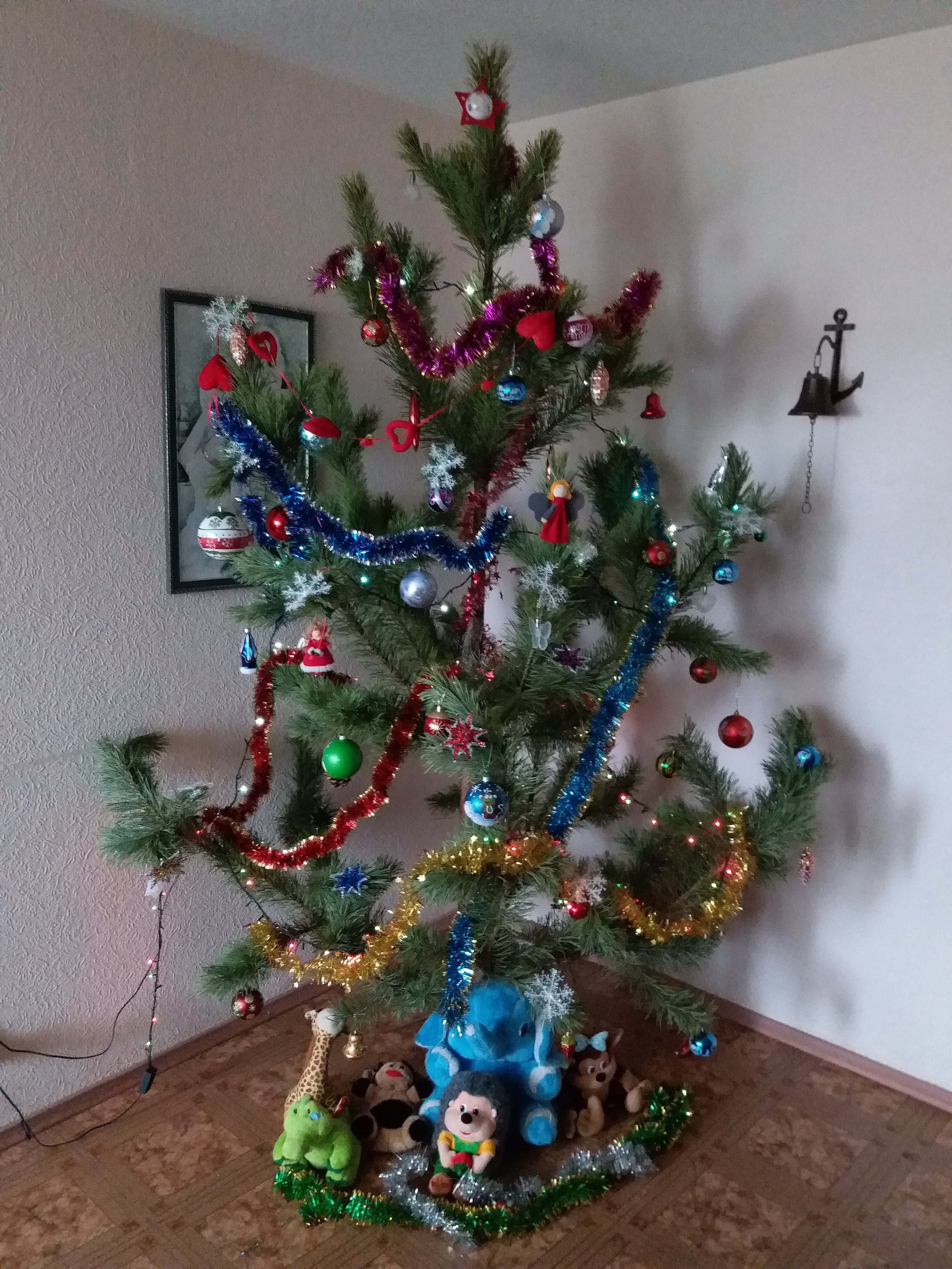 не? и зачем ее драпировать мишурой? можно прост хрень конусную тогда завешать дождиком и пойдет. По мне, так должно быть видно именно пушистые ветки, непосредственно хвою, это ж елка, ну и на них игрухи. А просто что-то симметричное и сплошное, ну эт тогда синтетику надо. Оно ведь и интересно что елка один год в эту сторону торчит, другой в другую, вот мне в этом попалась с настоящими шишками. Еще б белка какая была и я б поверил в дедмороза .