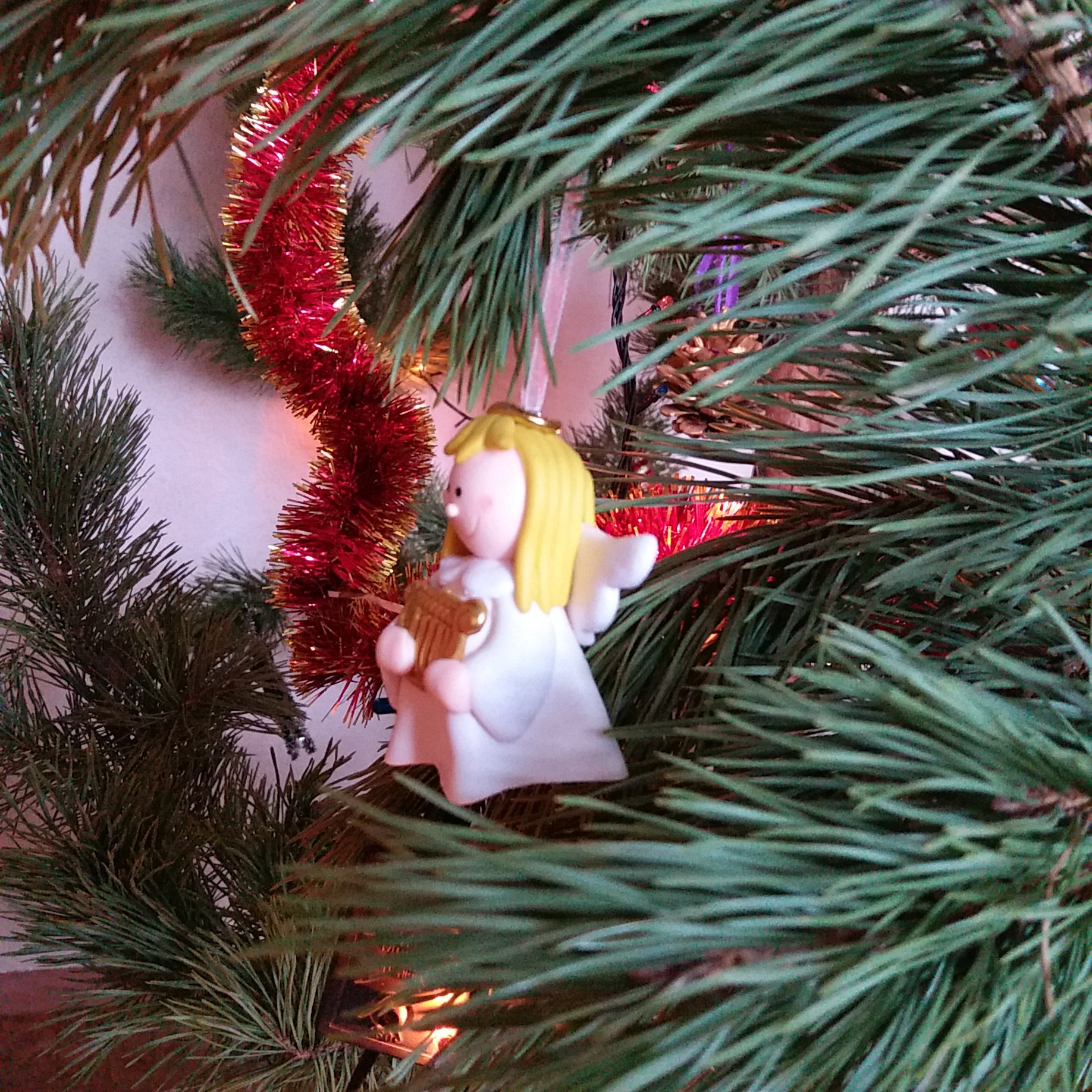 В ОБИ ездил вчера, думал пихту разориться взять. Но нормального роста стоят уже совсем конских денег, уехал не солоно хлебавши. Походив по базарам и посмотрев на неизменно унылые сосны, всё-таки взял обычную ель. Хрен с ней, пусть и осыпется за неделю, но она всё-таки красивая. А сосны я люблю только в живом виде на природе. Дома же это вот торчащее в стороны редкими ветвями недоразумение как ни пытайся задрапировать мишурой, но один фиг куцо выглядит. Ёлку взял в необрезанном виде метра два с половиной высотой, но у ней верхушка длинная и бессмысленная, при обрезке выйдет как раз около двух метров. Цена 1000 рублей.