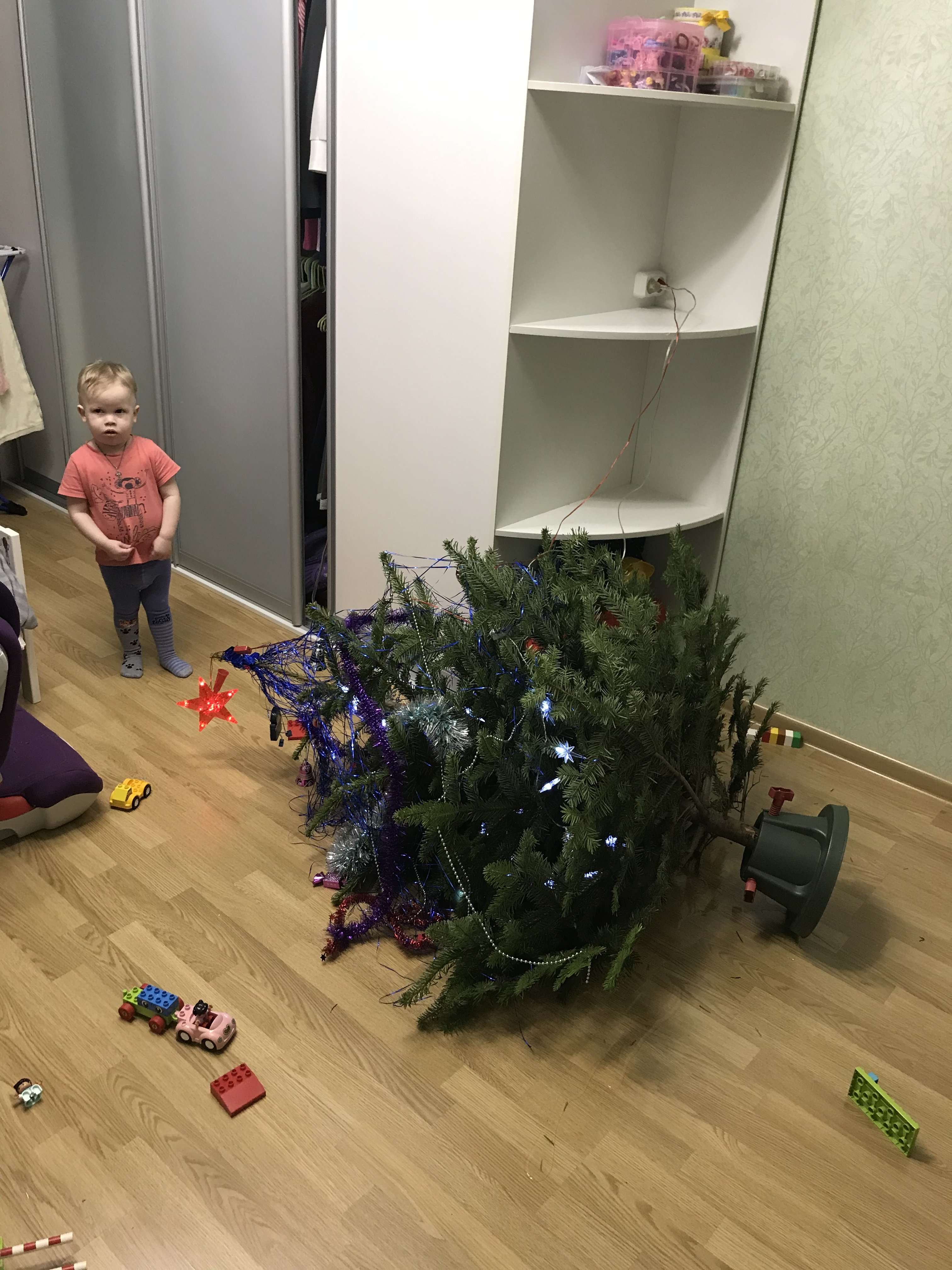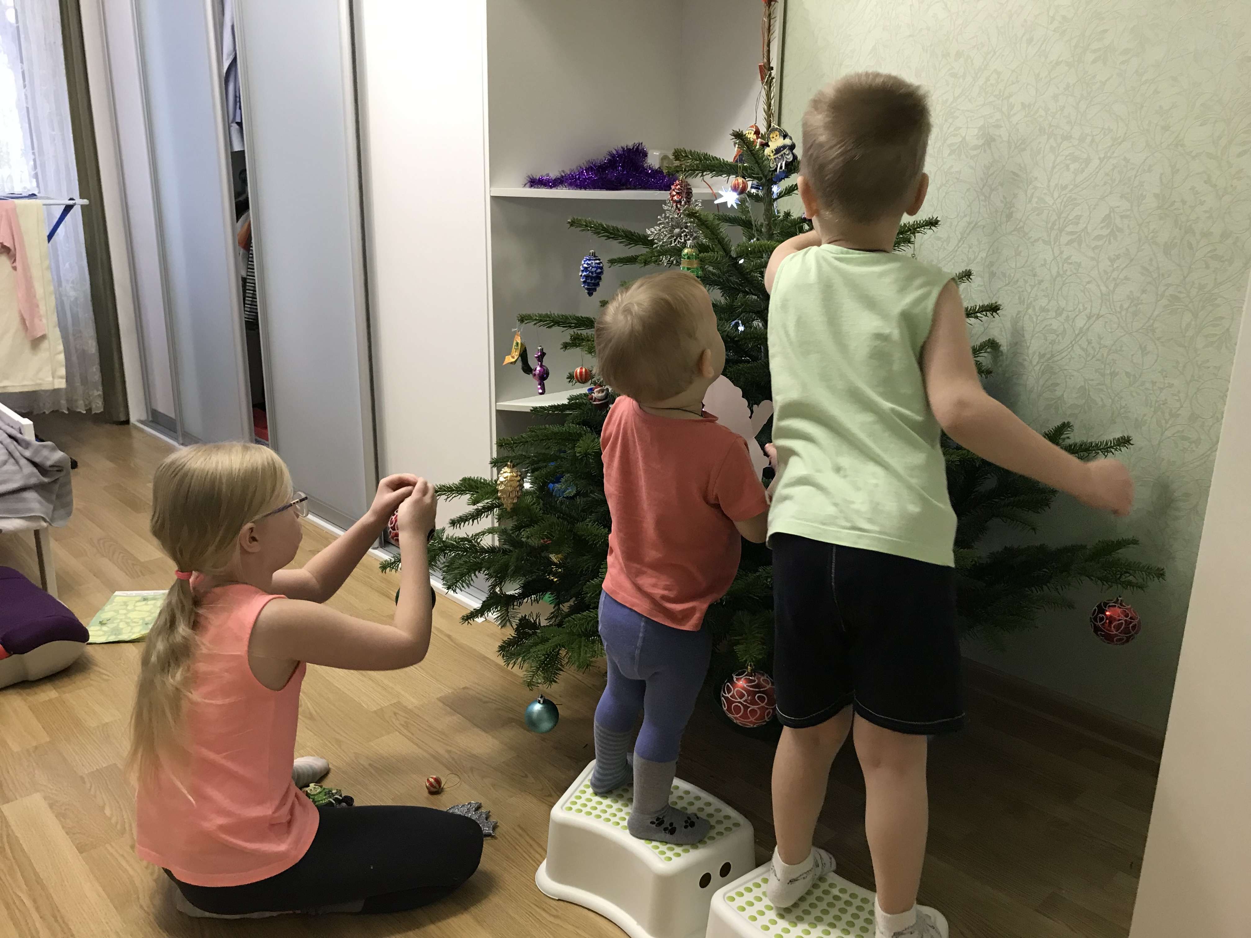 Хотела пошутить, что изверги бы не стали так тщательно заматывать переноску для включения гирлянды в пакет Но тут мимо окна проехала машина, к которой 2 ватрушки сзади привязаны, а на них дети сидят так что мы объективно хорошие родители, просто на следующий год украсим ёлок 7, пусть ищут