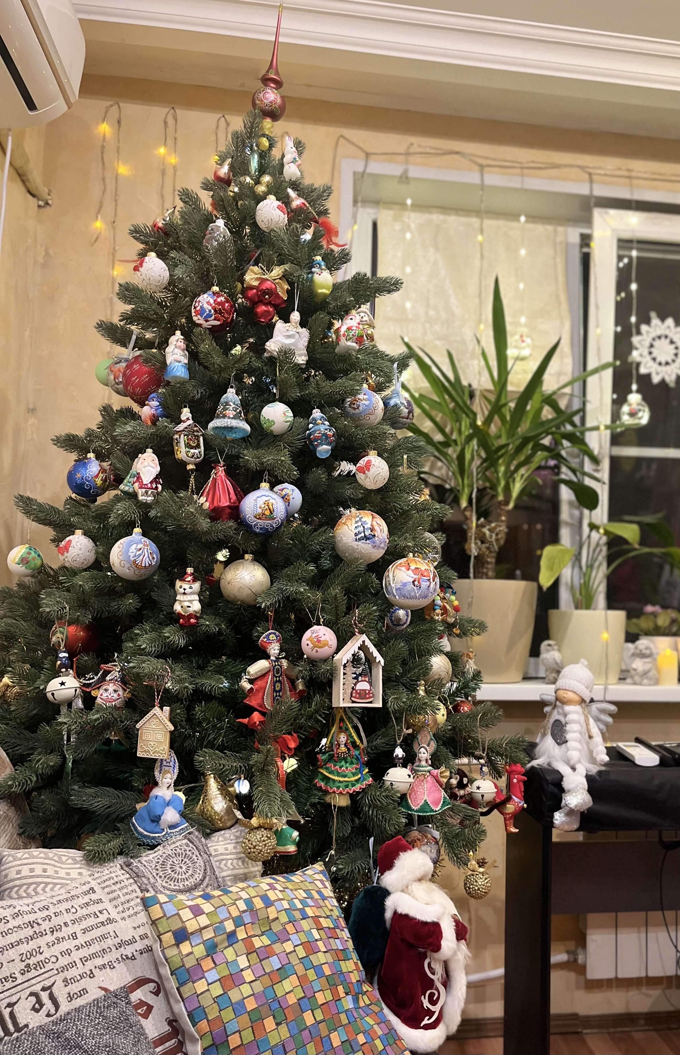 По рынкам вчера не было времени ходить.) прошла по близлежащим местам, где почти весь декабрь эти веточки продавались - не было… Сегодня поедем с поздравлениями по родственникам, может повезёт, увижу/куплю…) вот еще такую красоту нарядили.)