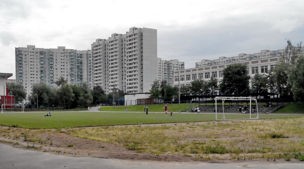 Еще контраст... Только это не школа, а обычная площадка между домами. На заднем плане хоккейная коробка.