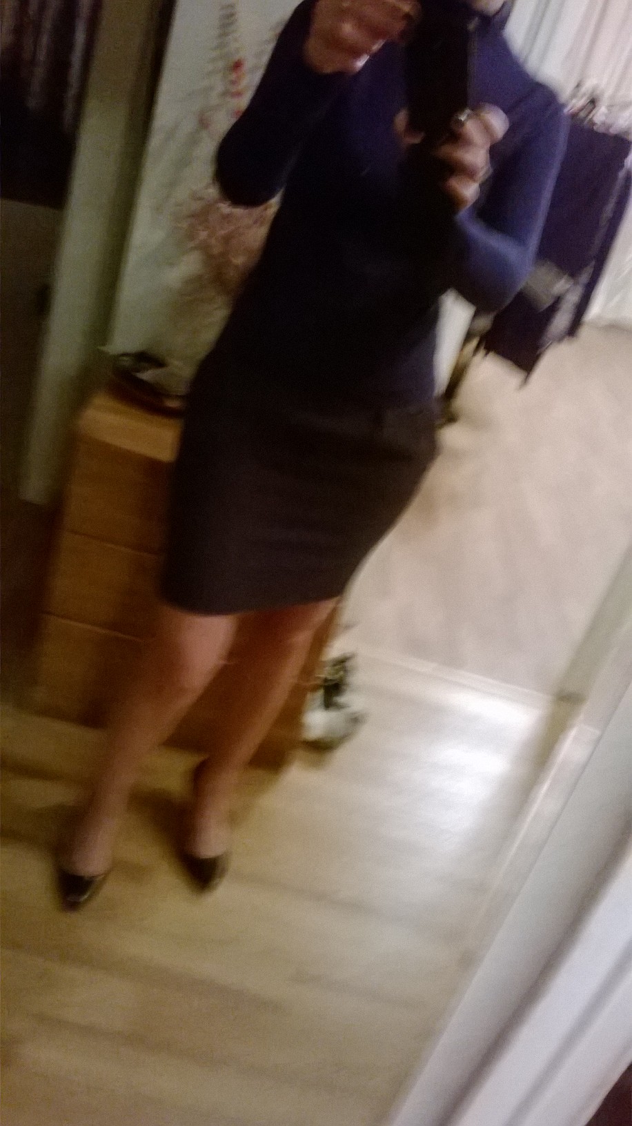 Можно и не спешить. Простая юбка, без гиперзатей. Без сезонных фишек - на все времена т.е. Только не с облегающим верхом. Это м.б. и подчёркивает фигуру и притягивает взгляды, но стилистически простит. Взрослит - я бы даже так сказала))) Если водолазка - то свободнее, свитером такая водолазка. Если верх всё же облегающий, то напрашивается ещё и жакет или кардиган.